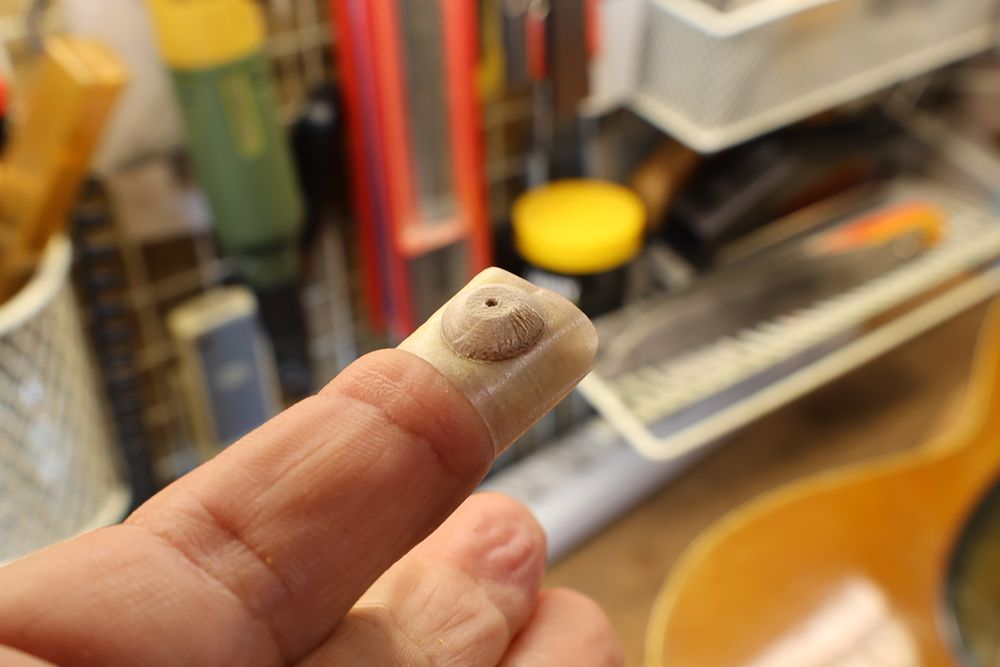 - 2.メイプル材からブリッジプレート・リペアのためのプラグを切り出します。