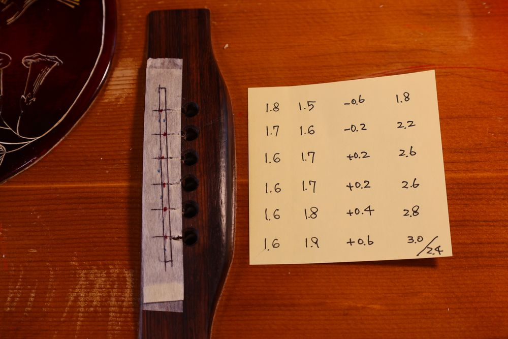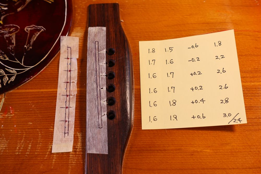 - 17.目標の弦溝位置を読みとります。(1弦と6弦の位置で他の弦の位置が決まります)