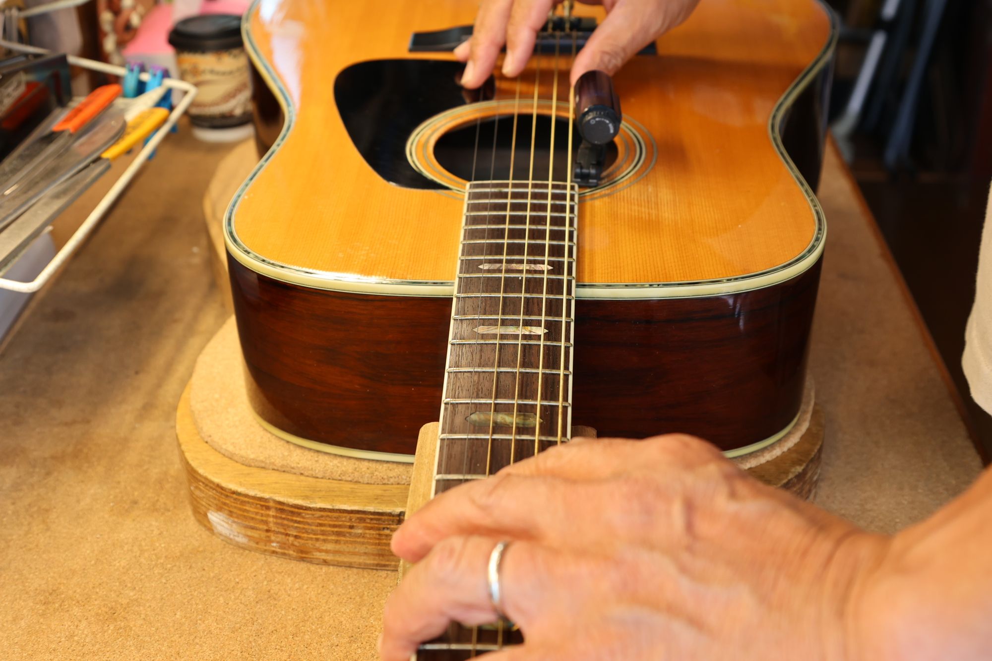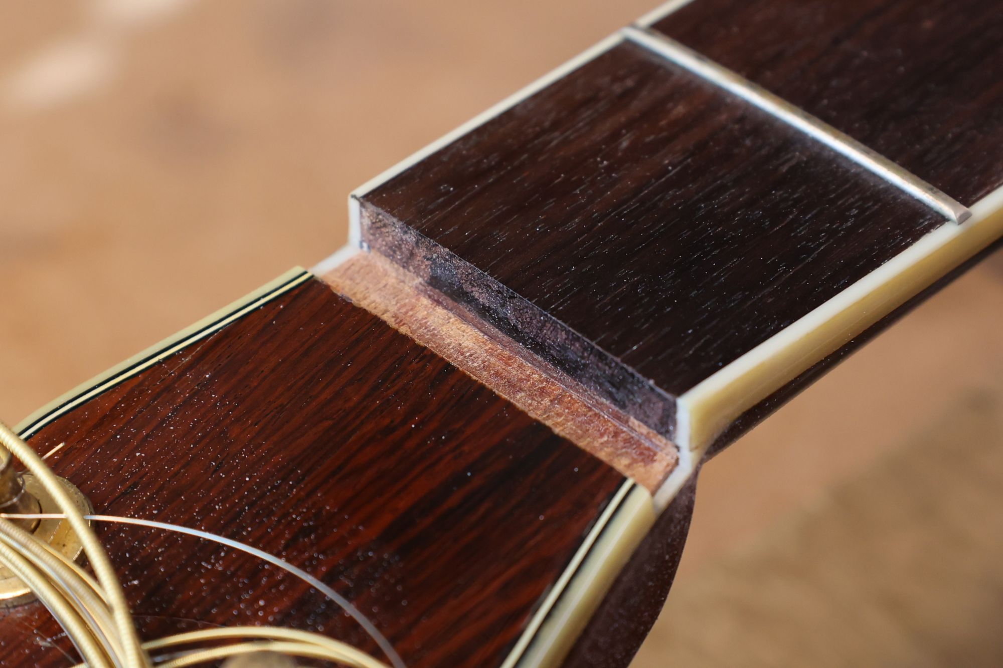 - 12.目視および指で触ってネック、フィンガーボードと段差のないことを確認しておきます。