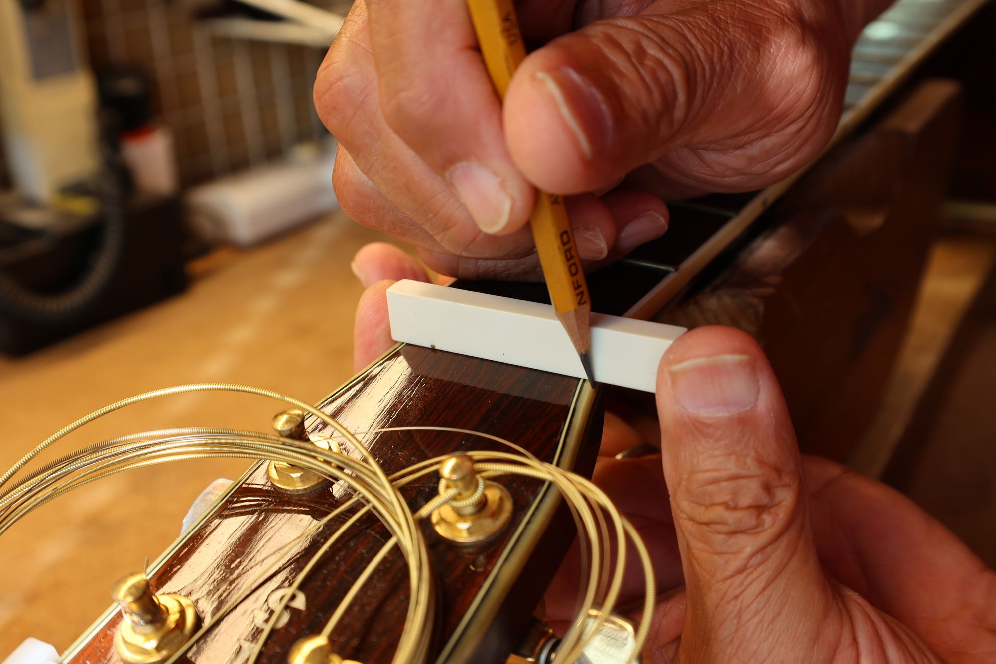 - 26.ナットと弦の接触面積と角度を最適化することによってギターの音色は大きく変わります。