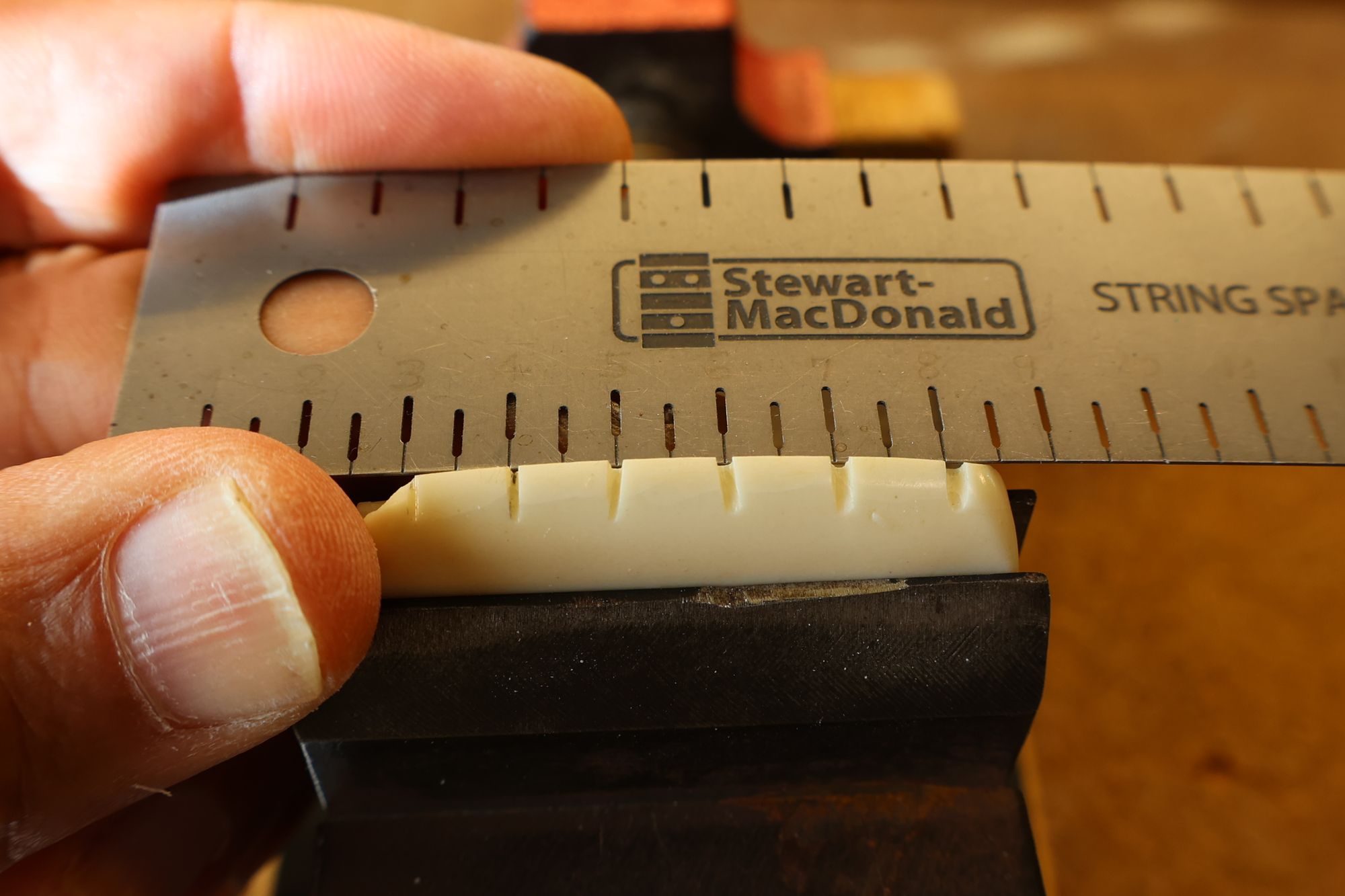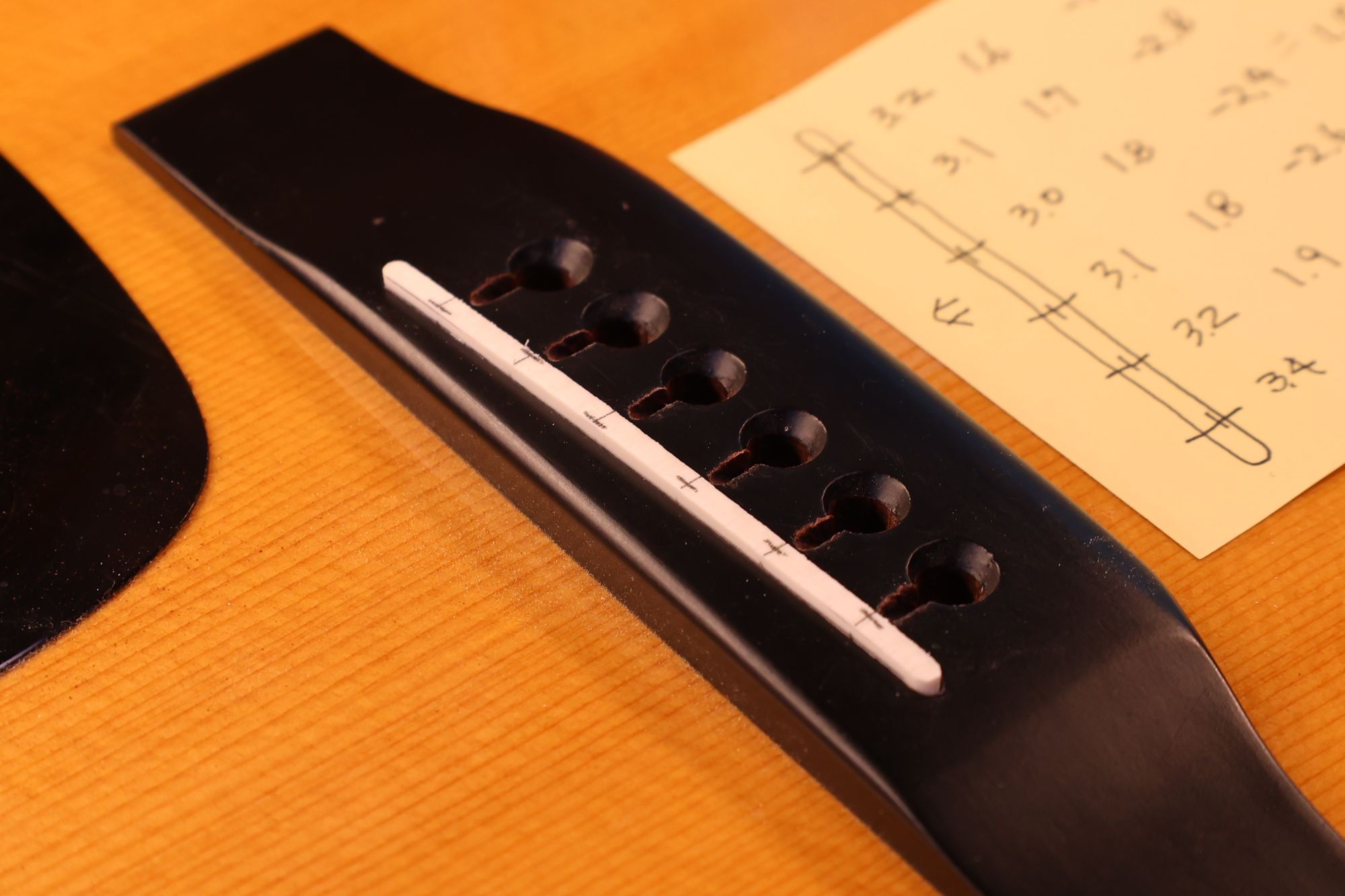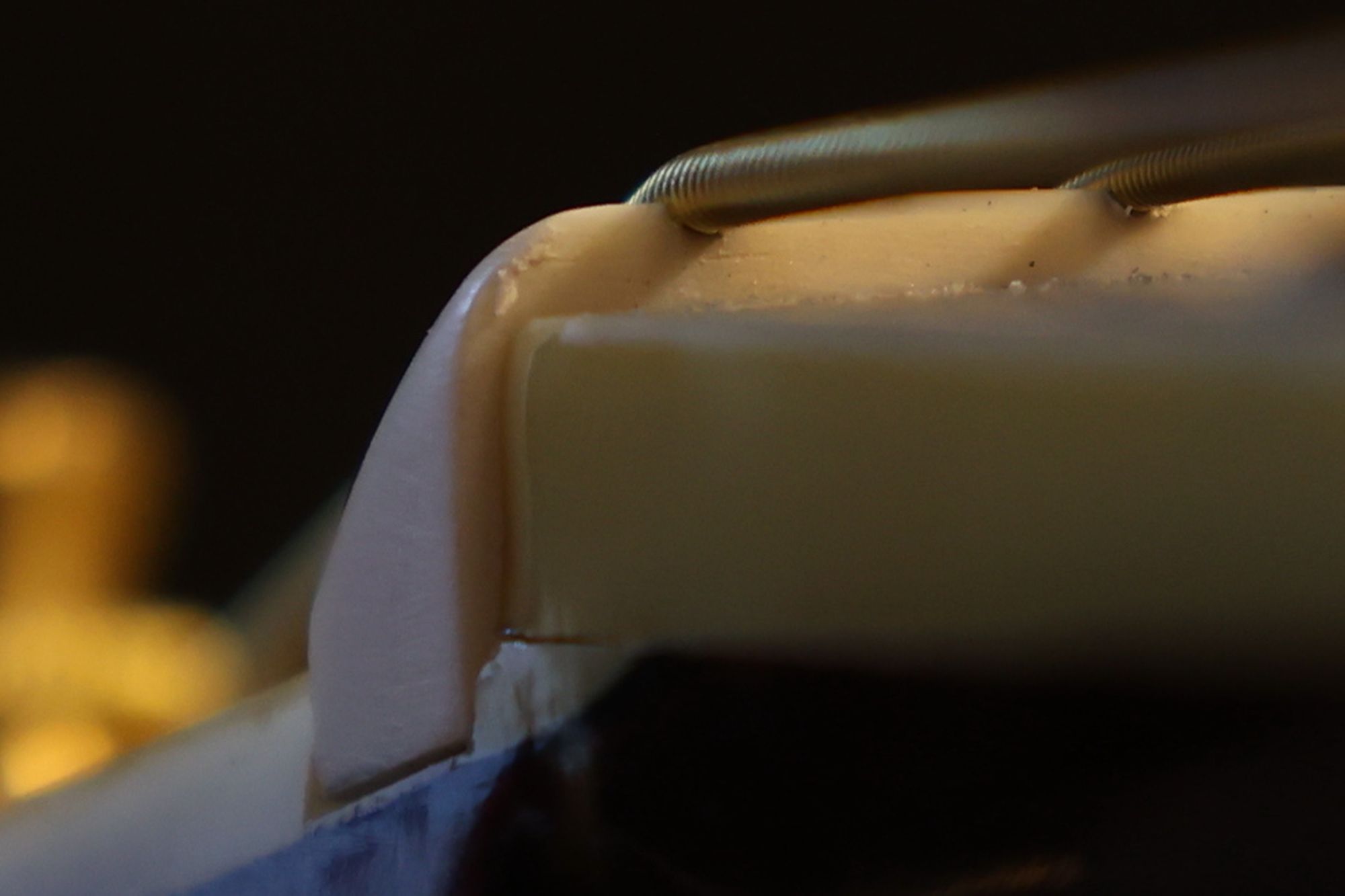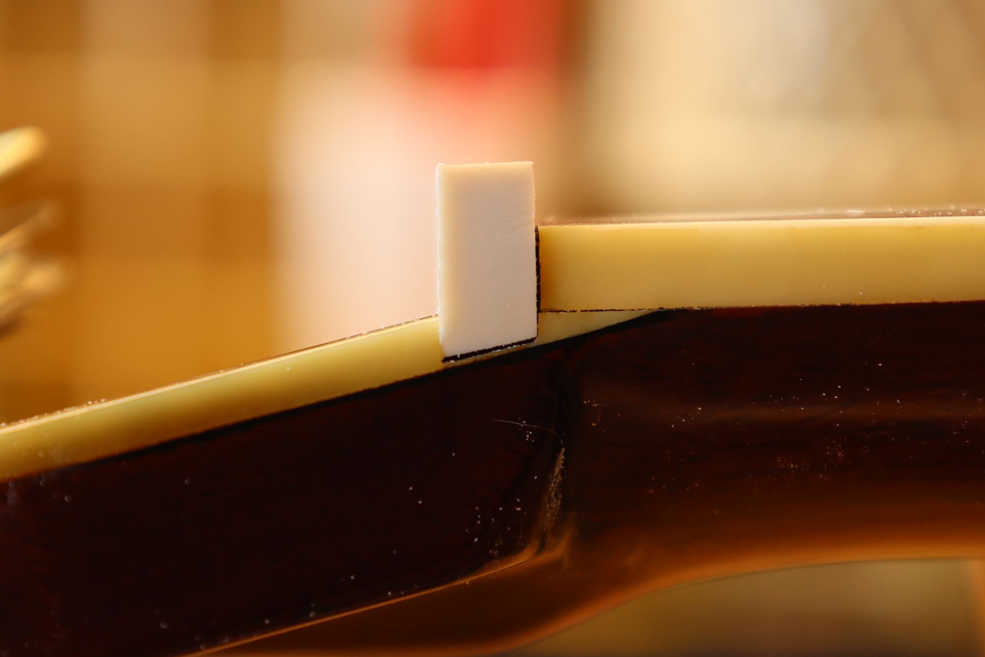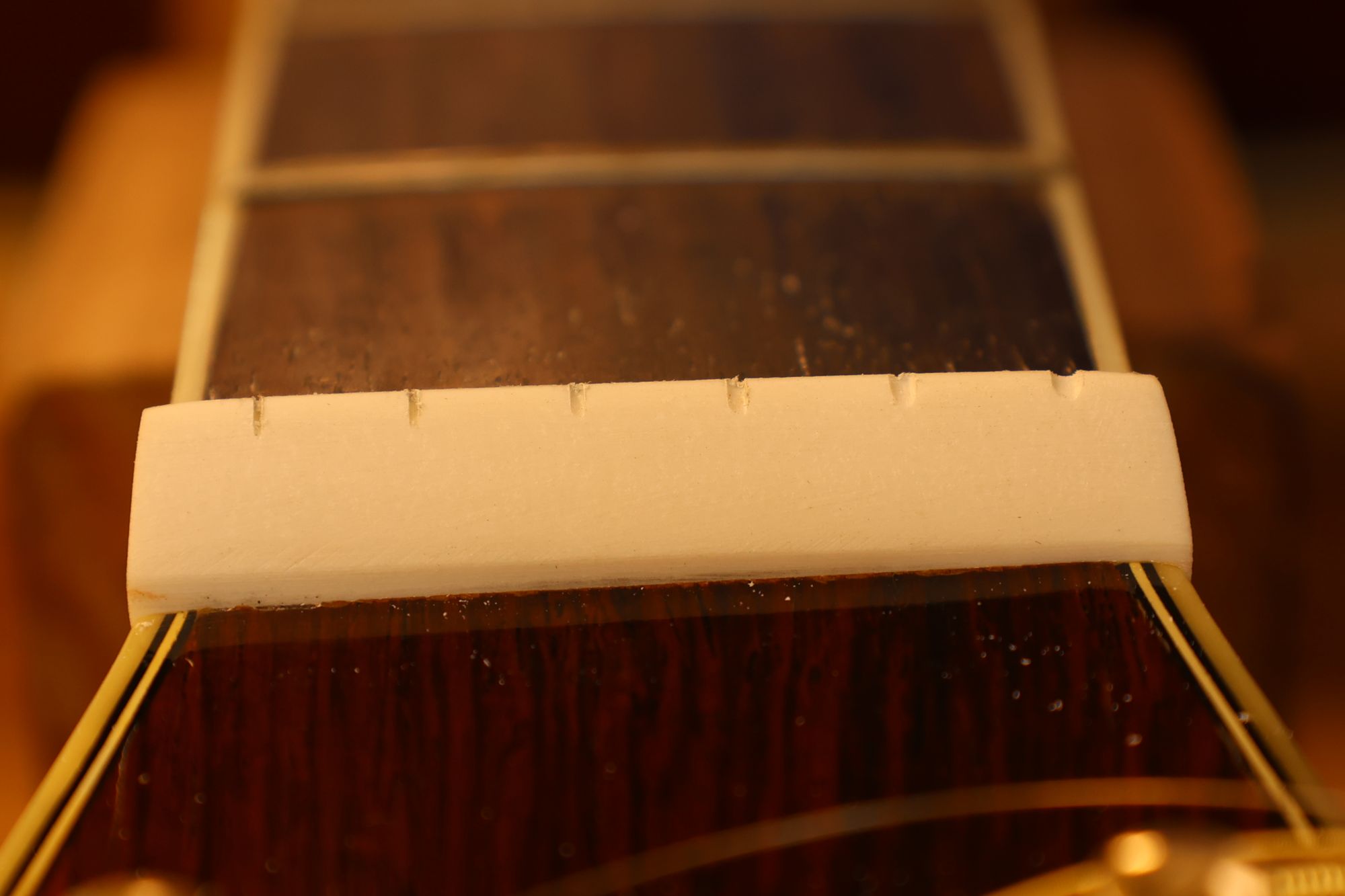 - 25.他の弦も同じ要領で調整しました。弦高調整後のナットです。