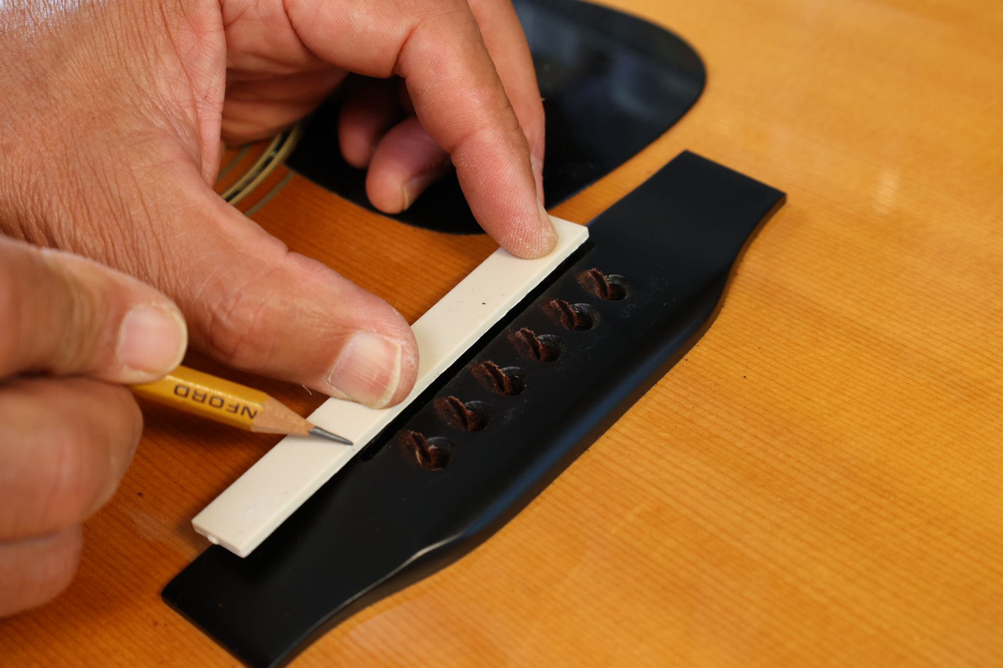 - 17.目標の弦溝位置を読みとります。(1弦と6弦の位置で他の弦の位置が決まります)