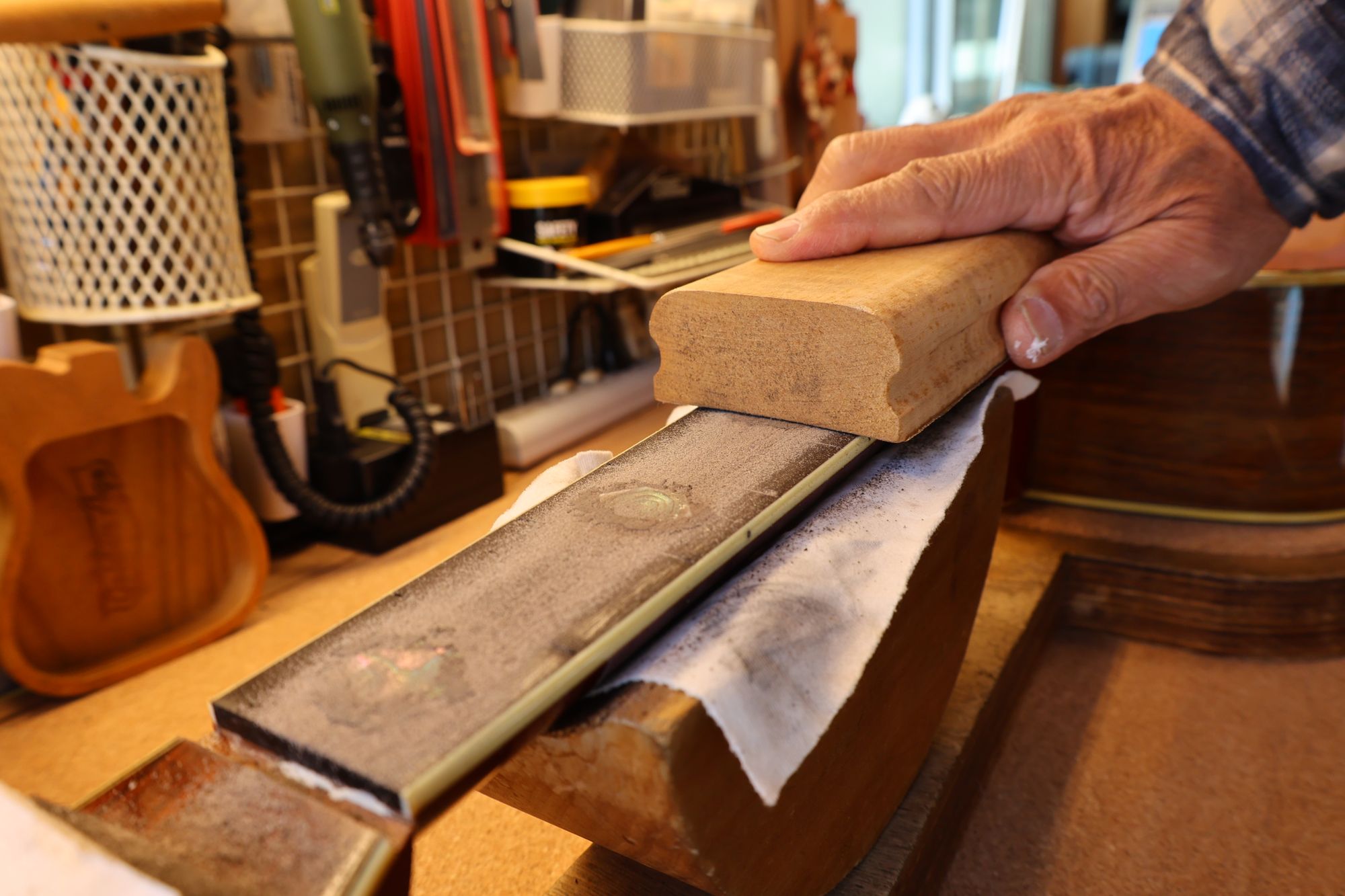 - 27.専用のヤスリを使ってフレット端を整形します。