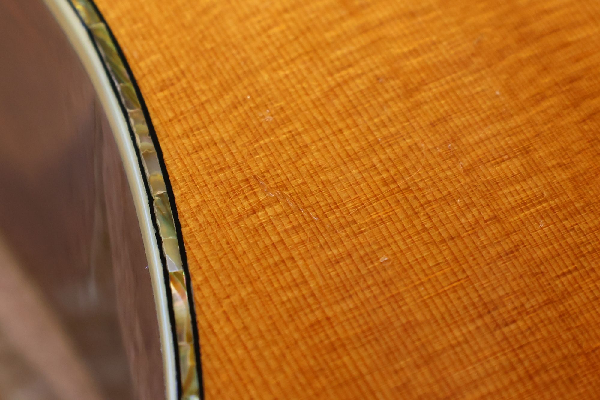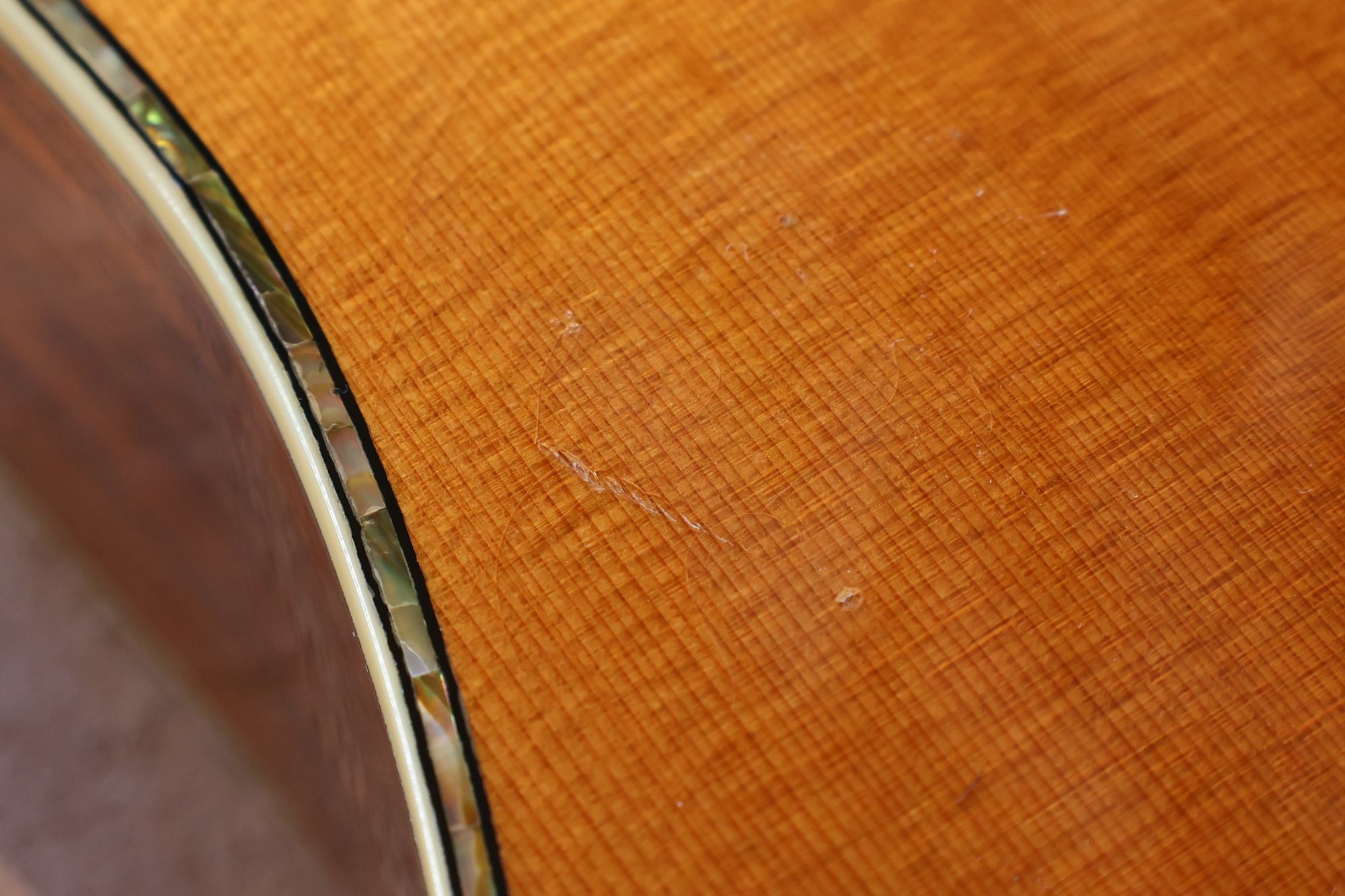- 2.サウンドホール際にピックのスクラッチ傷跡が見られます。