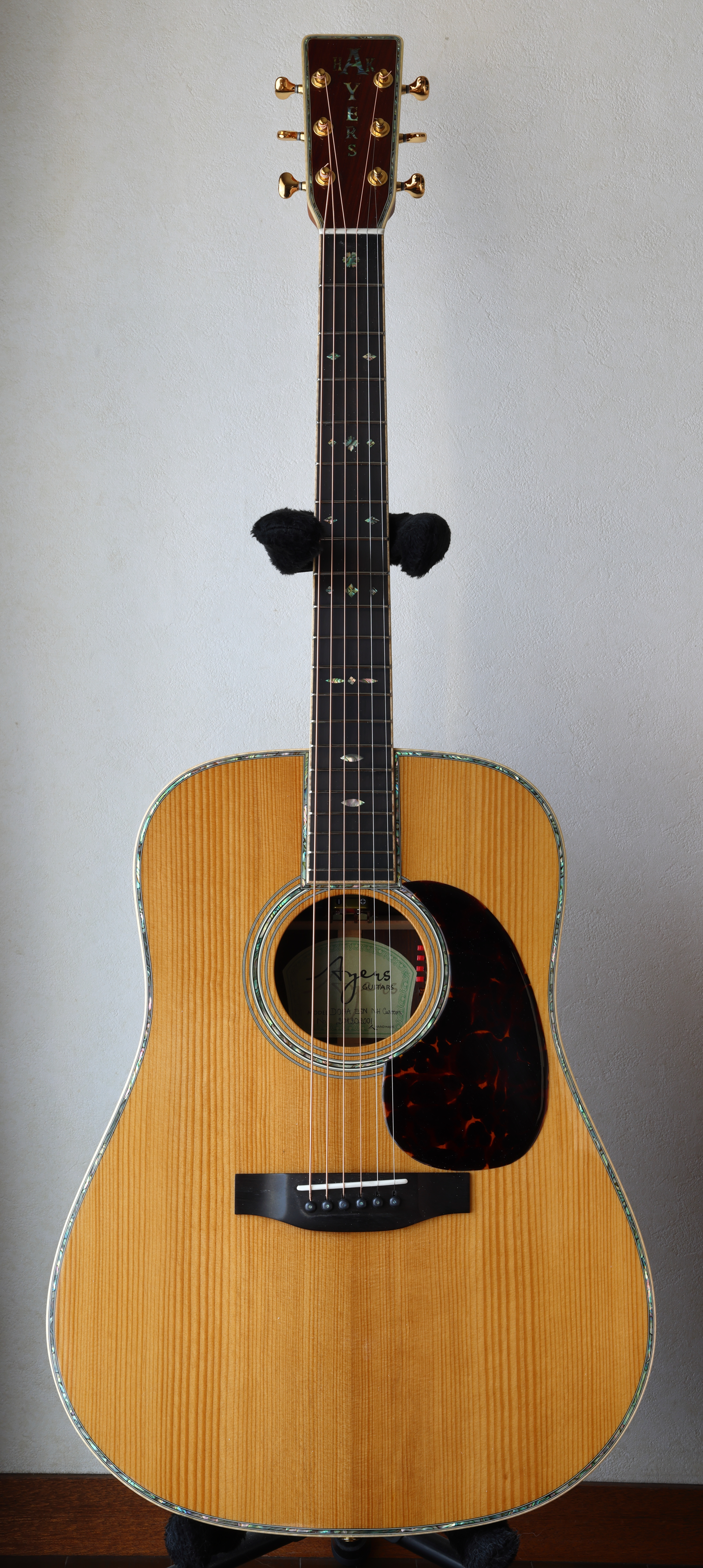 戻る大分県にお住まいのH.K.さんからAyers D09A ESN NH Customのリペアご依頼をいただき、フレット交換、ブリッジプレート・リペアなどを含むトータルリペアを行いました。 H.K.さんからは以前にK.Yairi YW-1000 、Martin D-45、YAMAHA LL36 AREのリペアご依頼をいただいており、 今回で4本目のギターリペアご依頼となります。H.K.さん、いつもありがとうございます。