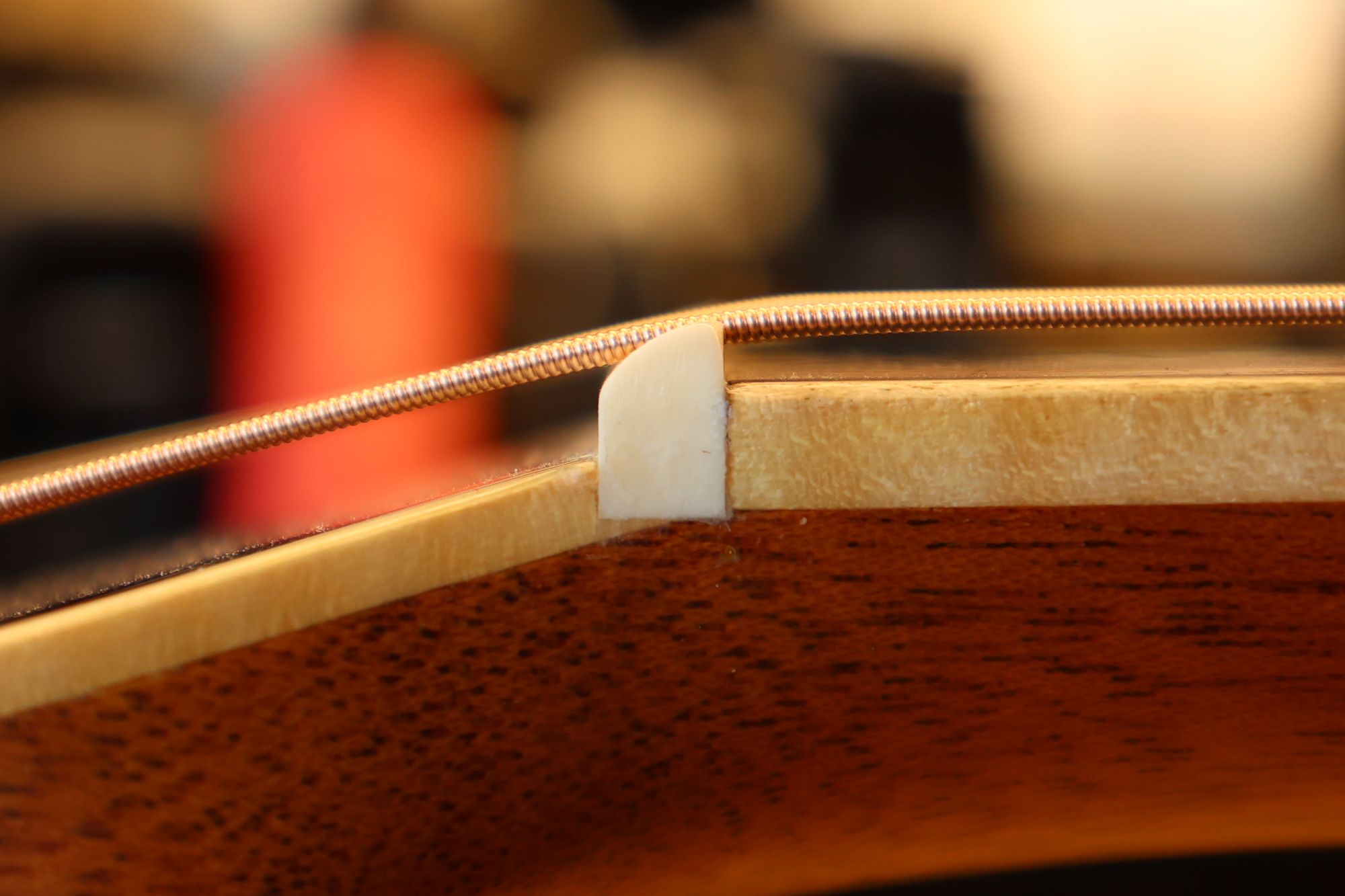 - 26.ナットと弦の接触面積と角度を最適化することによってギターの音色は大きく変わります。