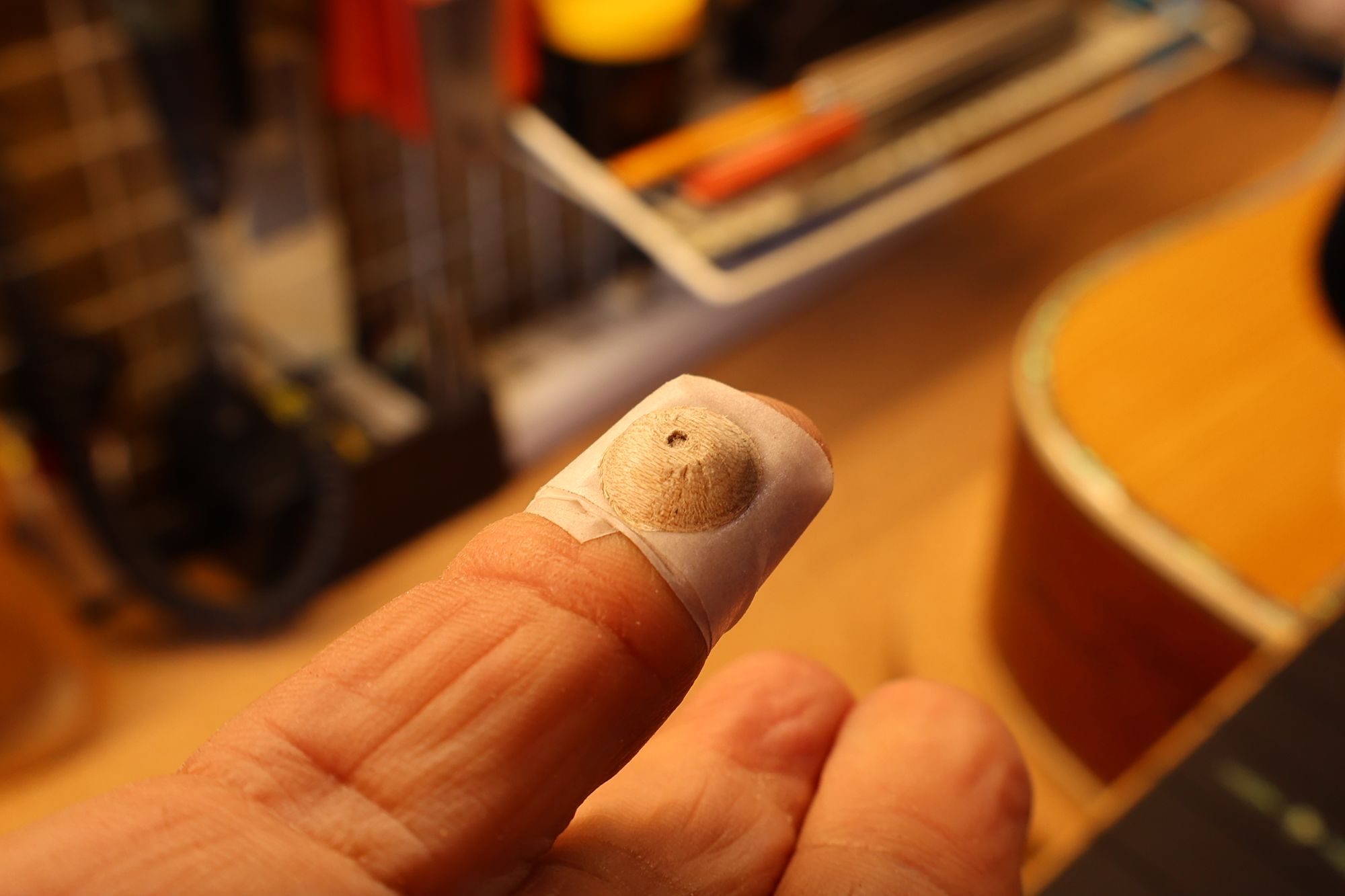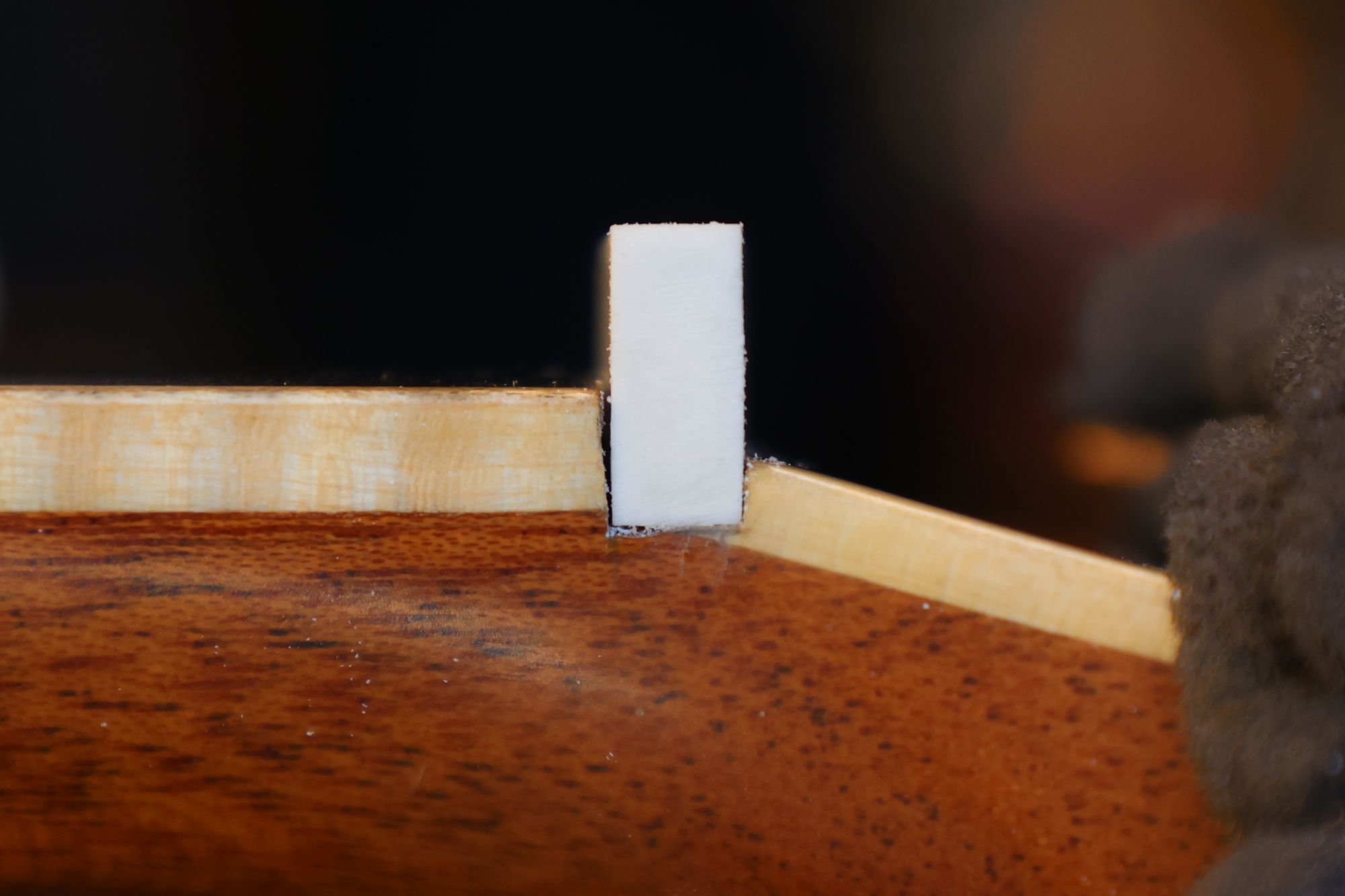 - 2.メイプル材からブリッジプレート・リペアのためのプラグを切り出します。