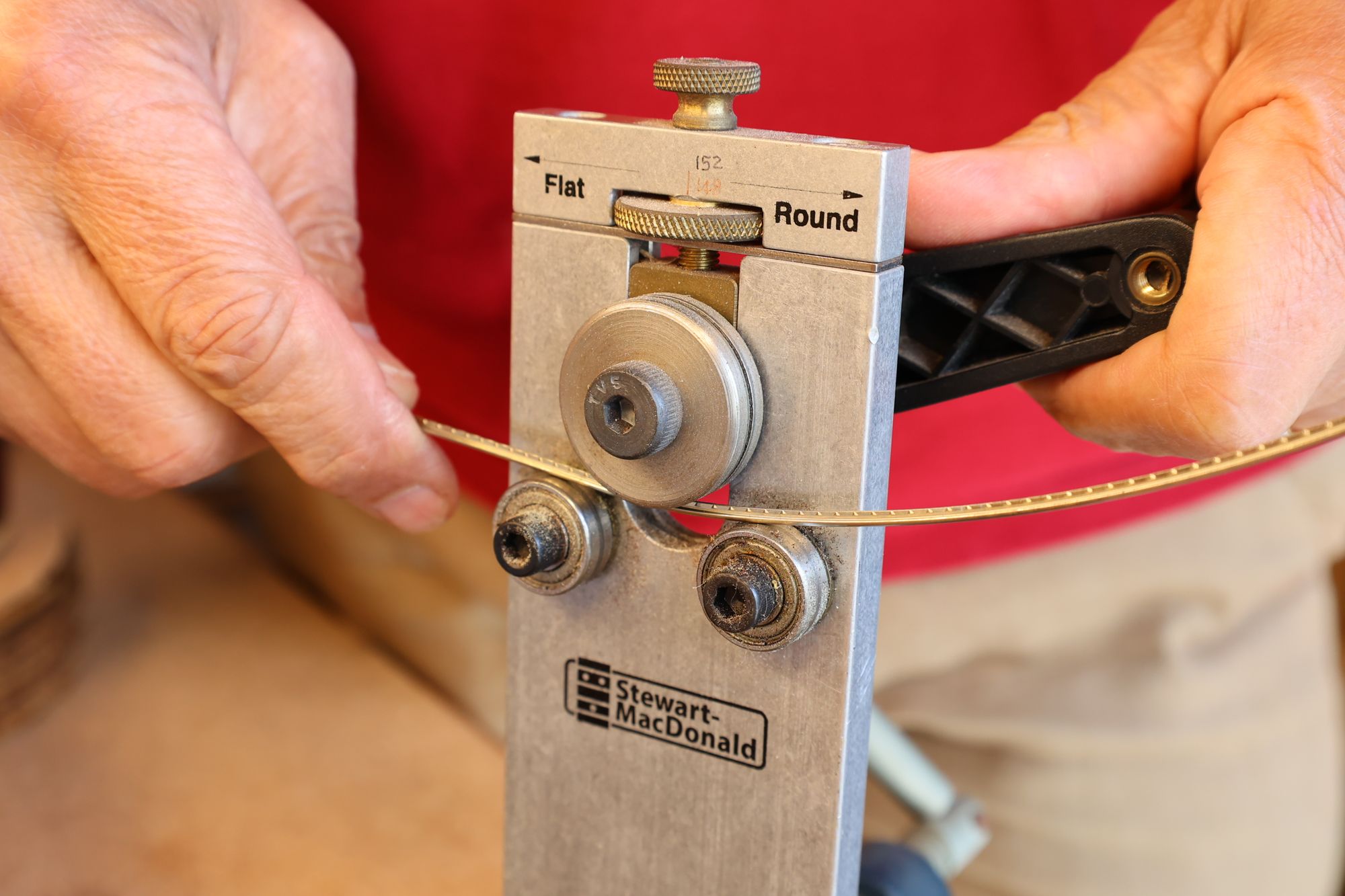 - 9.フレットベンダーでフレットにアールをつけていきます。