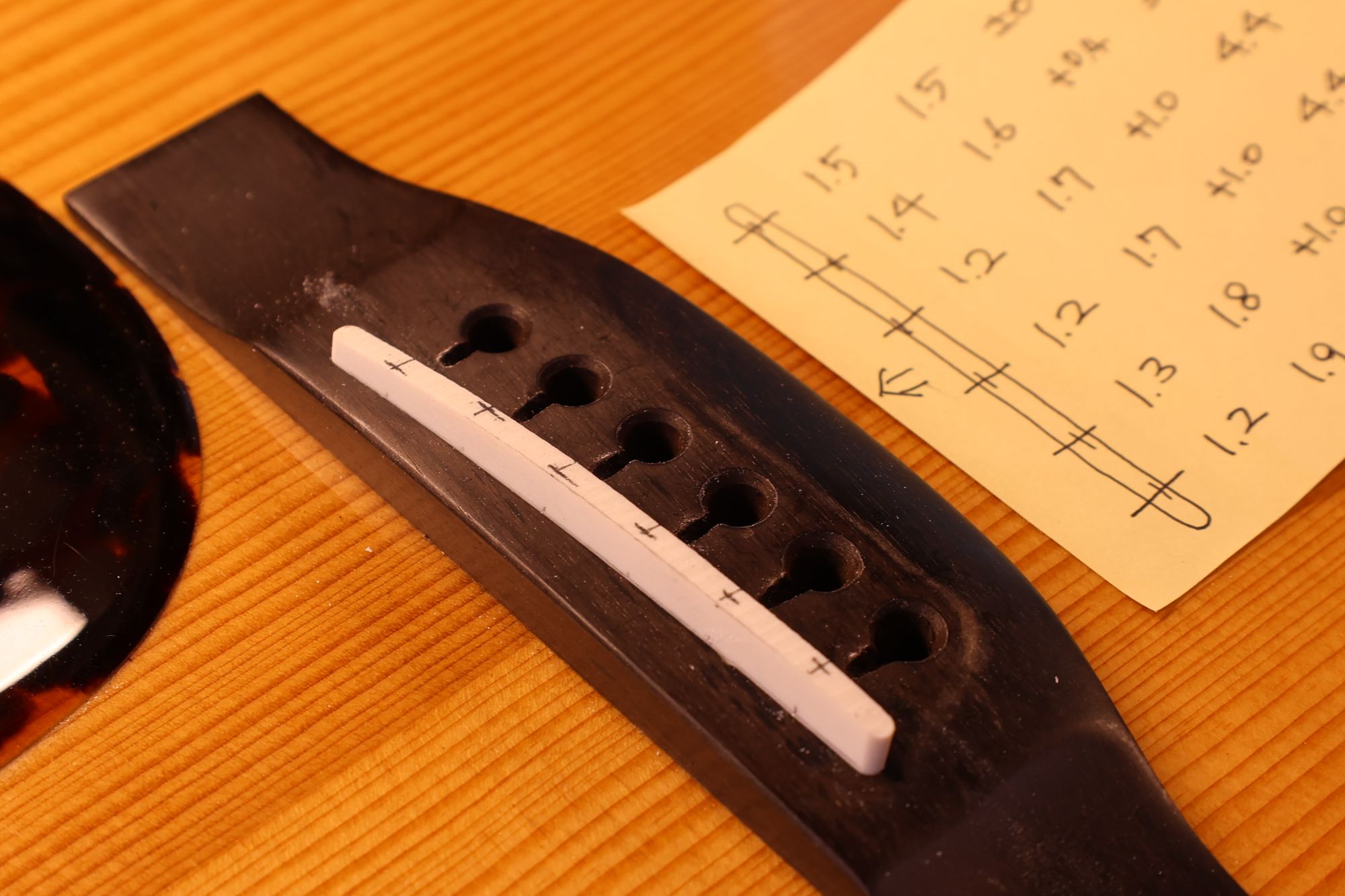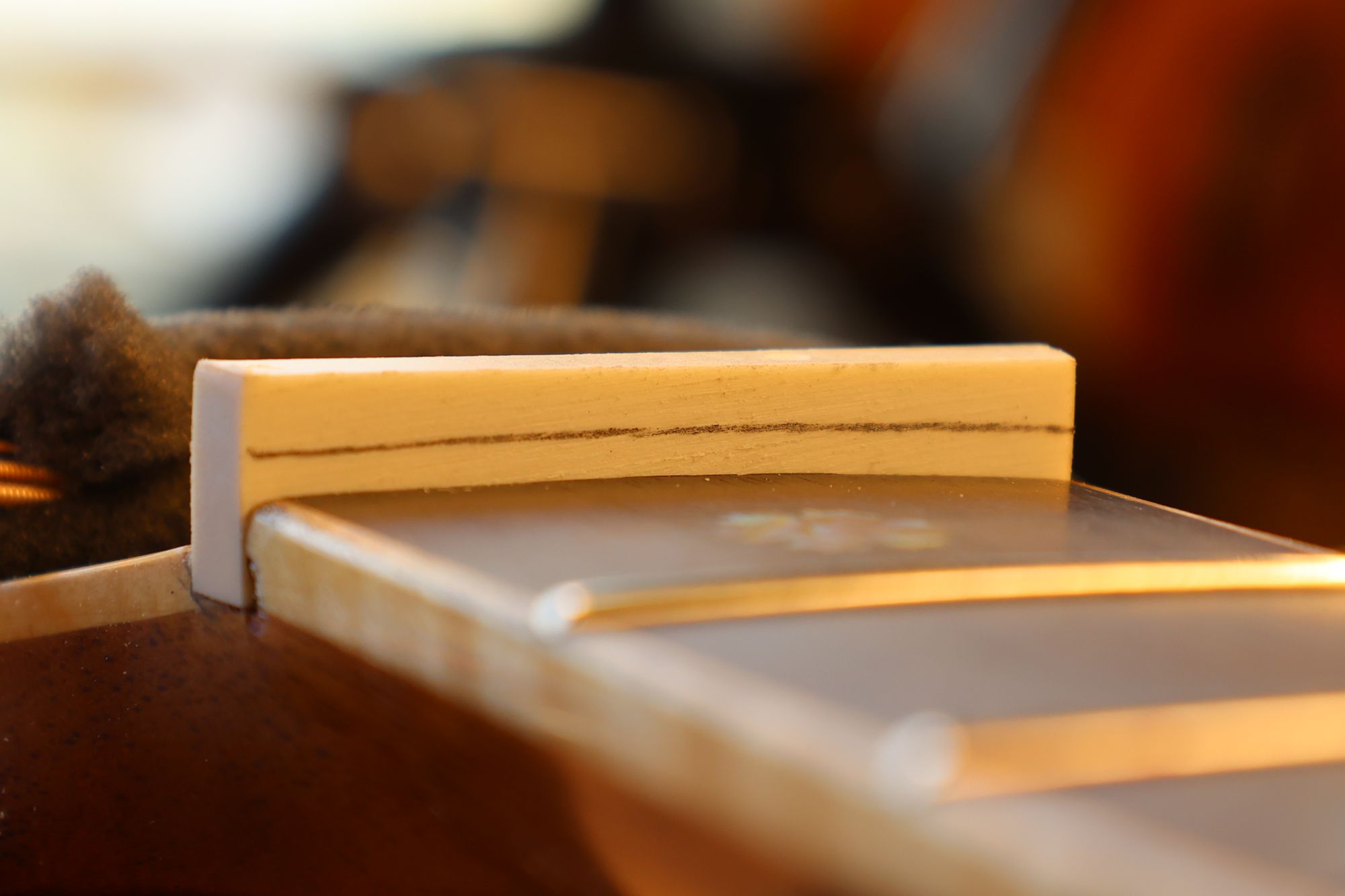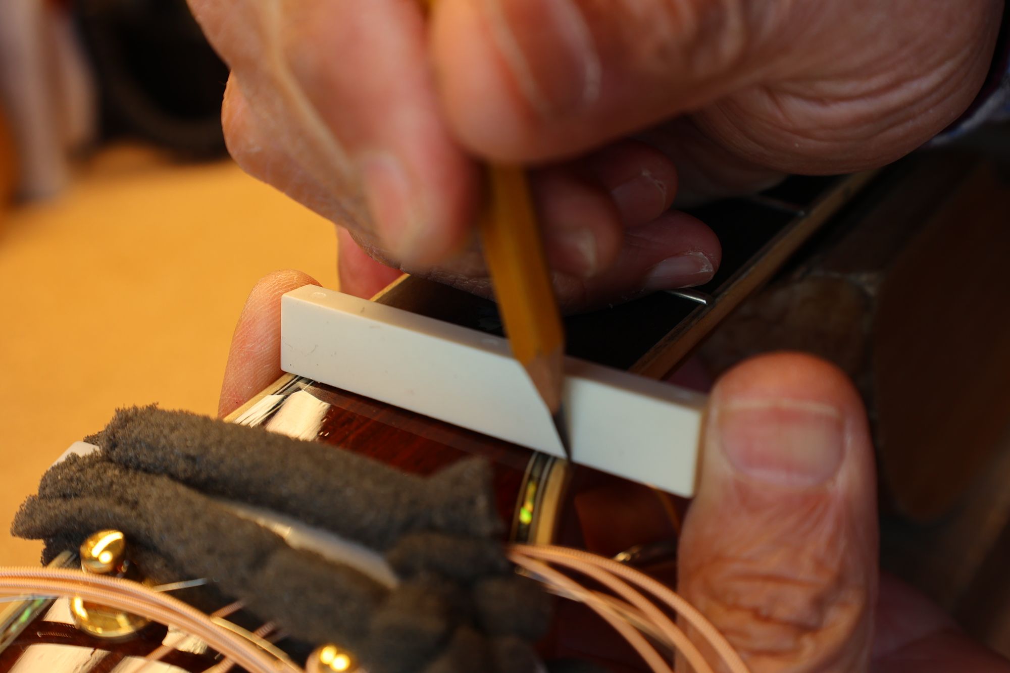- 18.弦溝位置を新しいナットに書き込みます。
