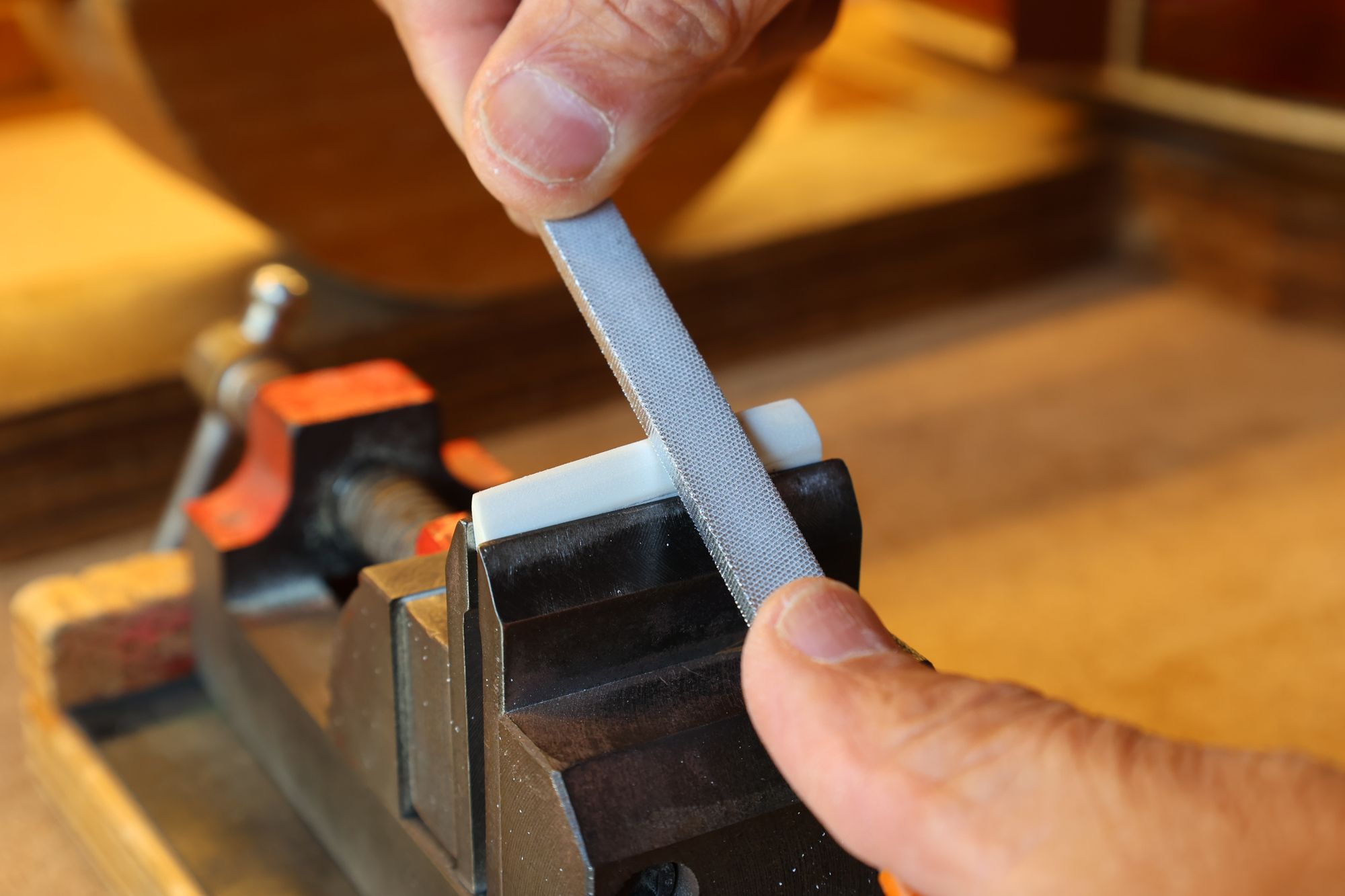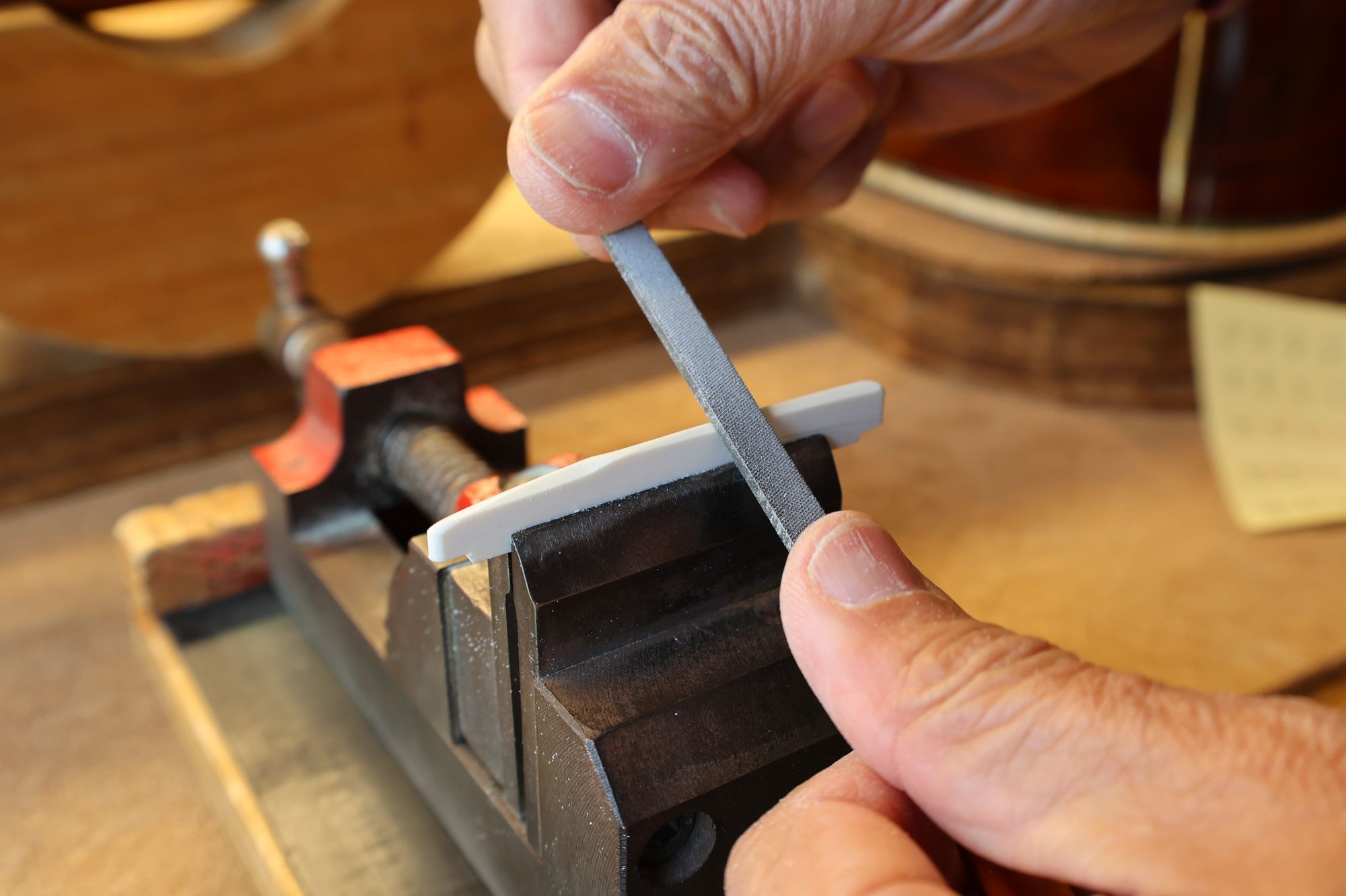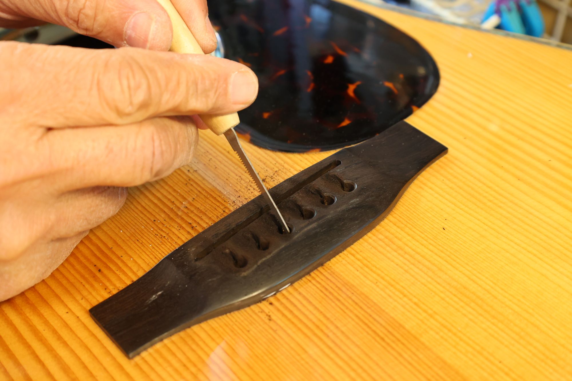 - 19.弦溝を専用のヤスリで彫り込んでいきます。
