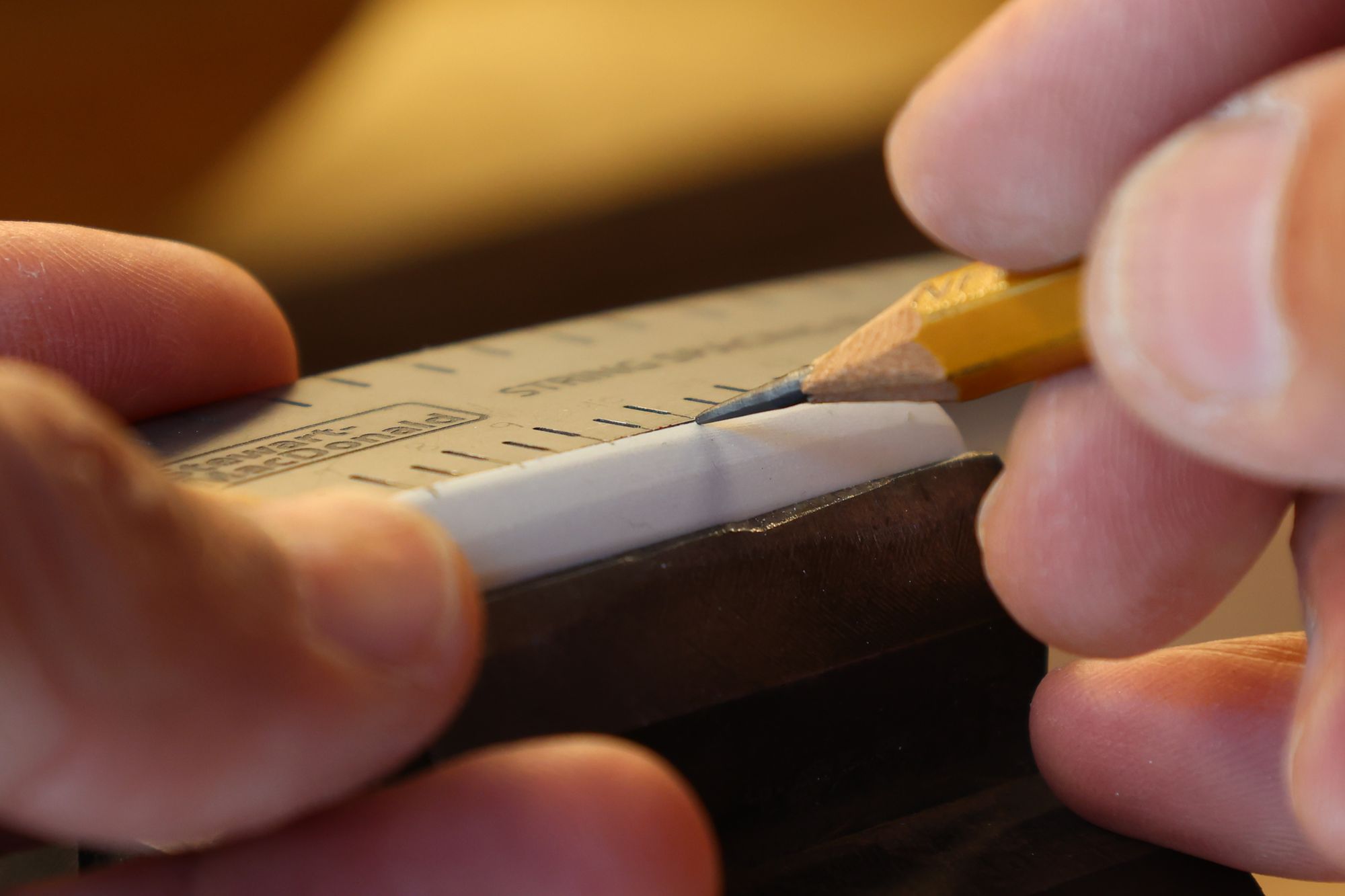- 13.フレットの高さに合わせてケガキ線を入れます。
