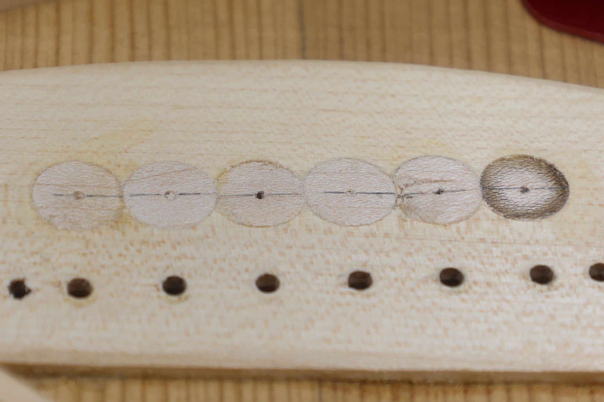 - 12.同様にして3,5弦の凹み加工も行いました。