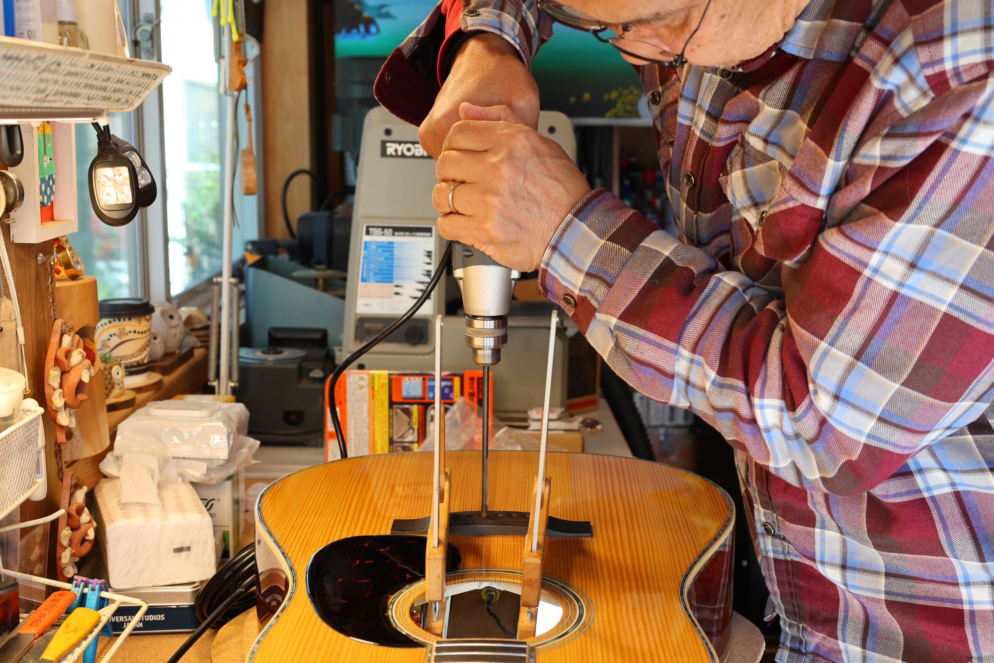 - ブリッジピン穴を空けている様子です