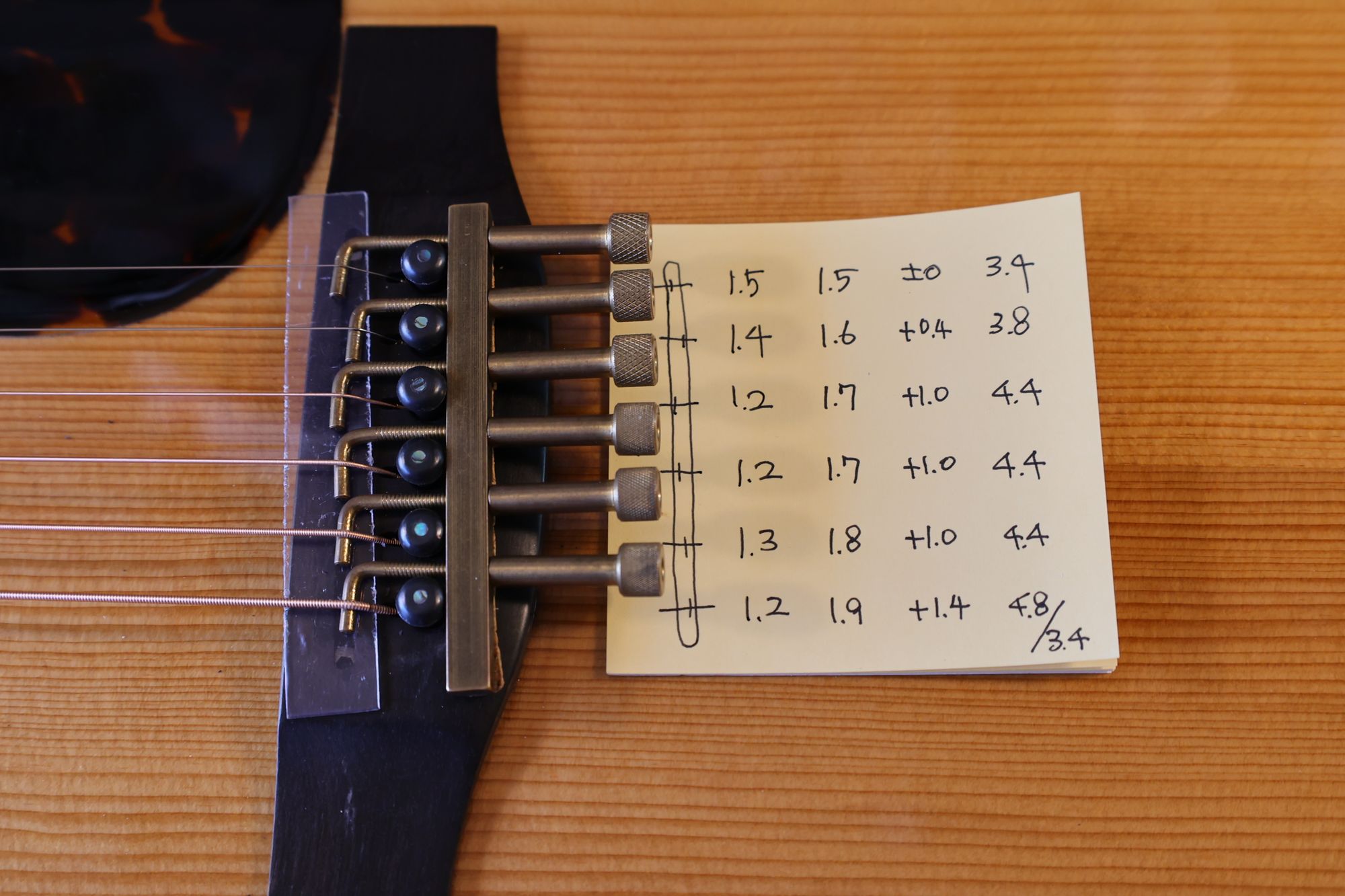 - 17.目標の弦溝位置を読みとります。(1弦と6弦の位置で他の弦の位置が決まります)