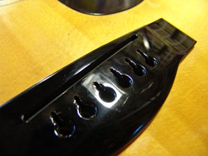 - 1.ブリッジにイントネーター、サウンドホールにチューナーを取り付けました。