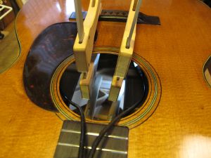 - 1.サウンドホールにチューナー、サドル位置にイントネーターを取り付けました。