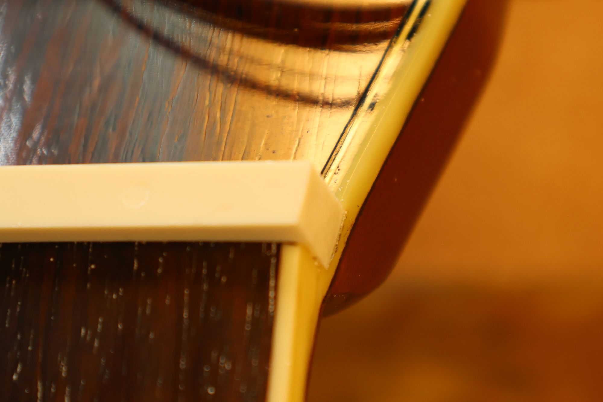 - 12.目視および指で触ってネック、フィンガーボードと段差のないことを確認しておきます。