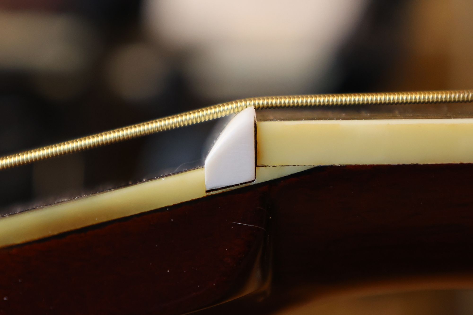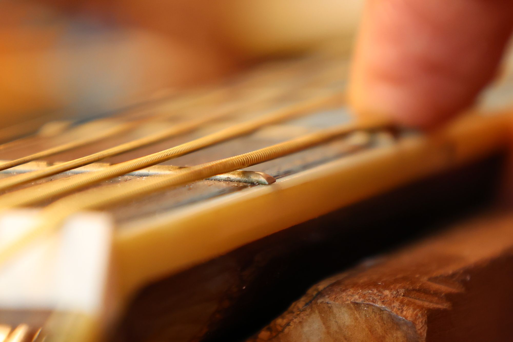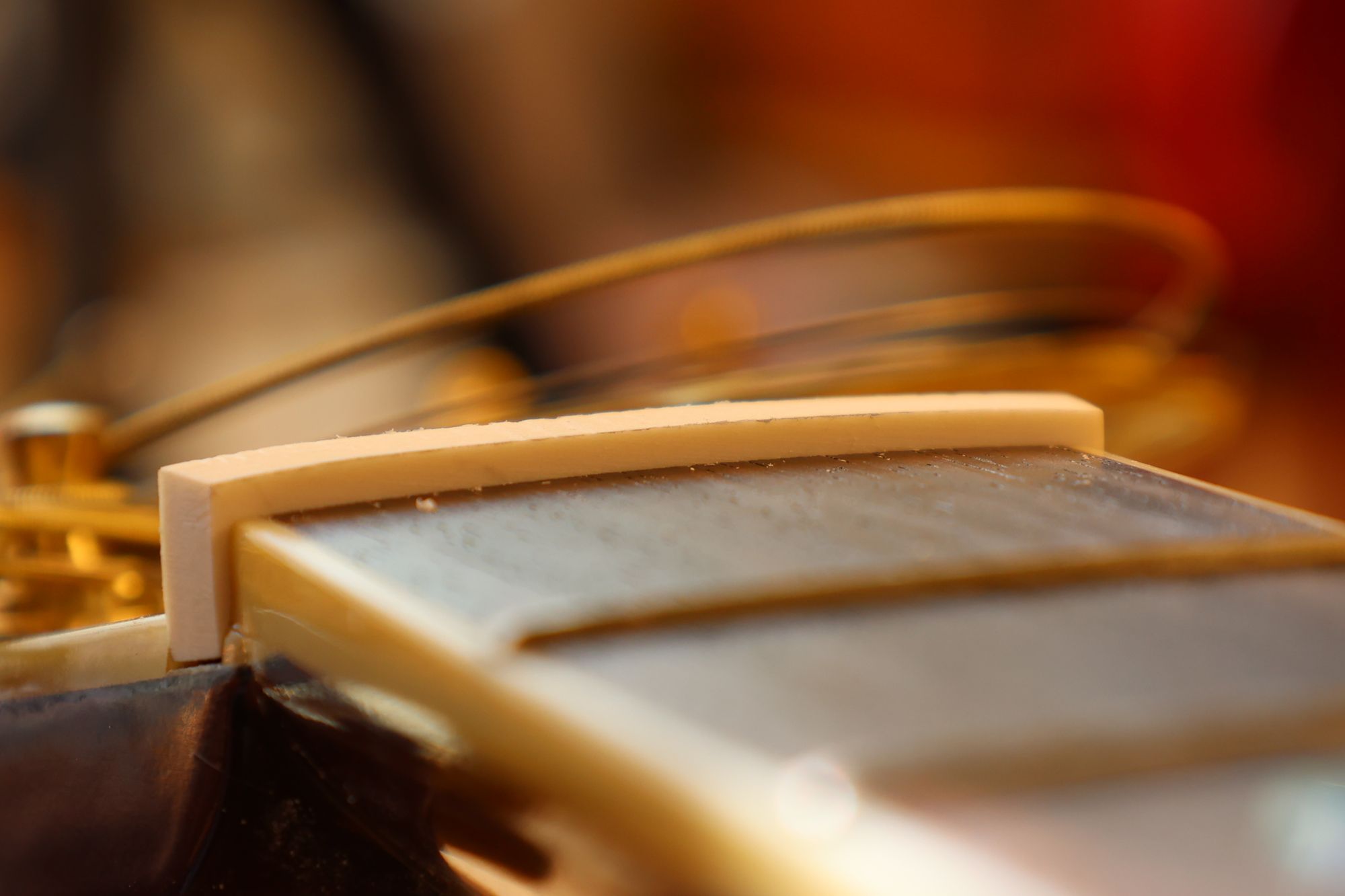 - 26.ナットと弦の接触面積と角度を最適化することによってギターの音色は大きく変わります。