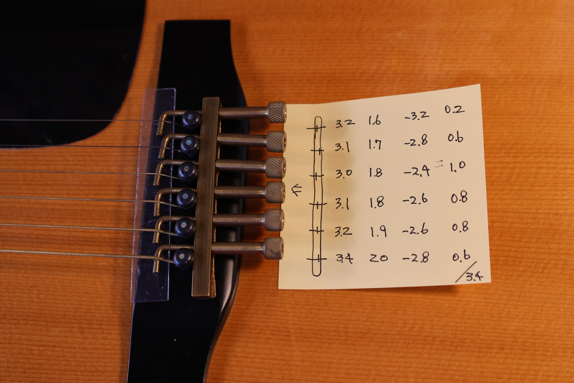 - 17.目標の弦溝位置を読みとります。(1弦と6弦の位置で他の弦の位置が決まります)
