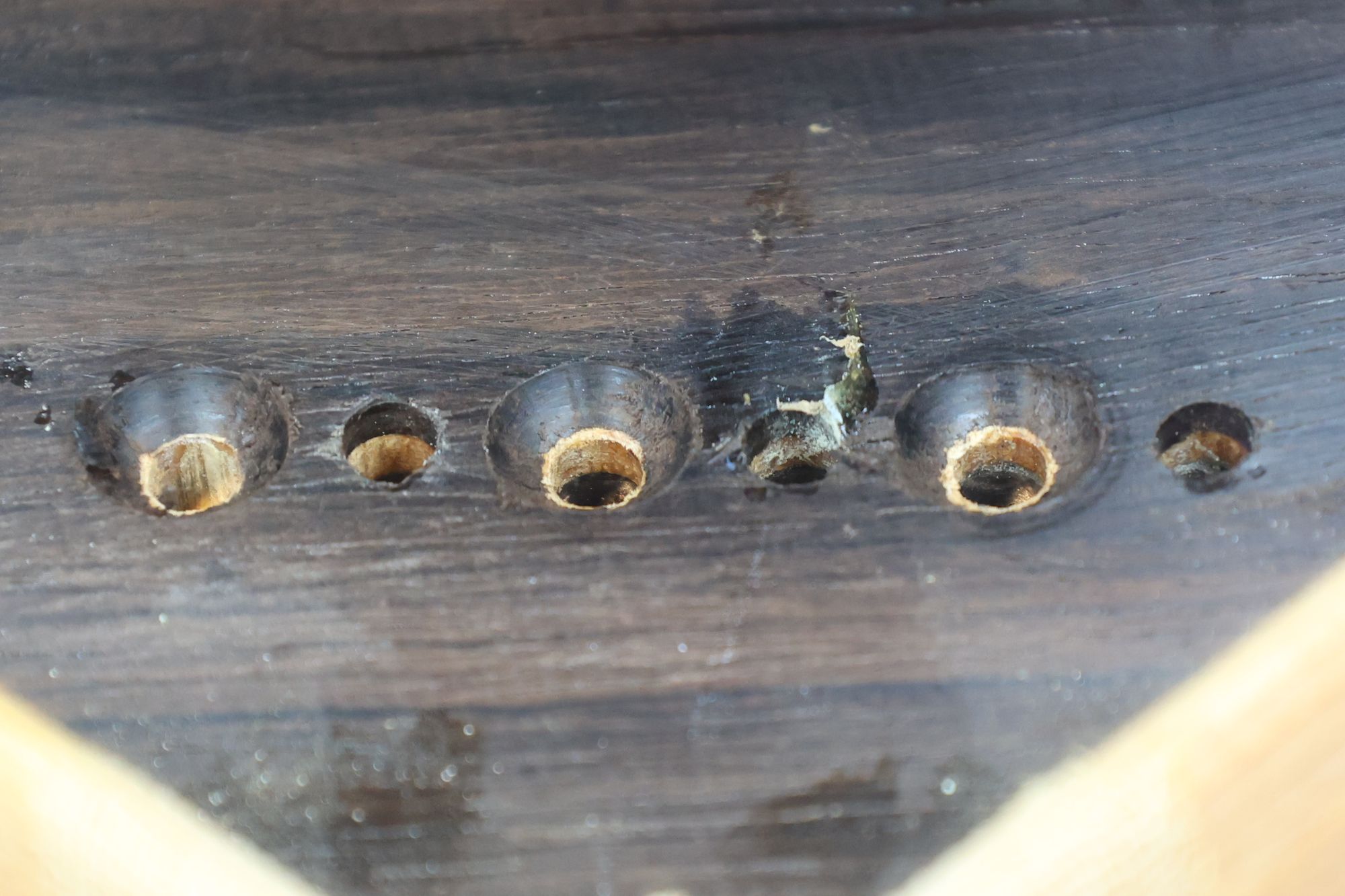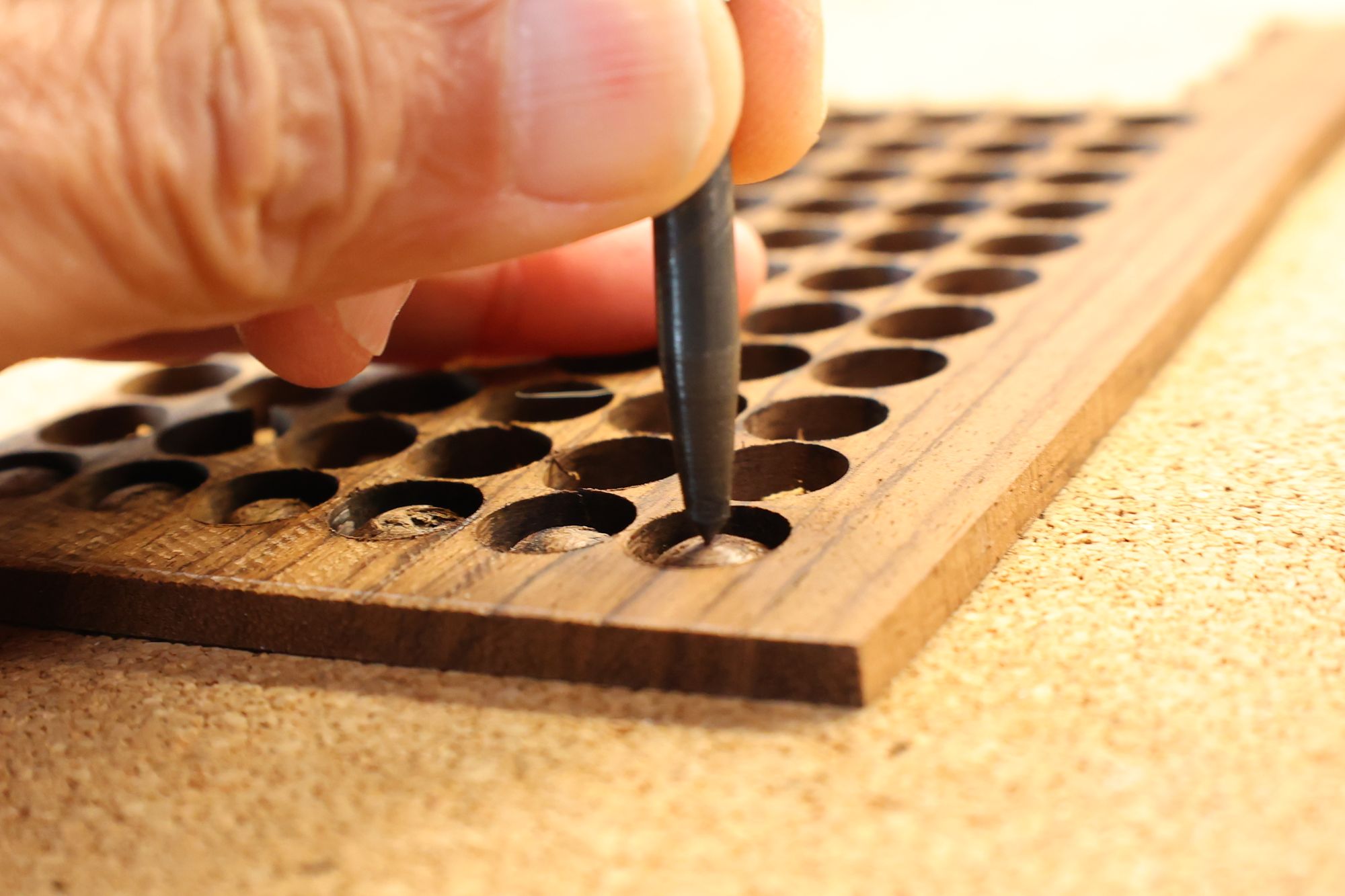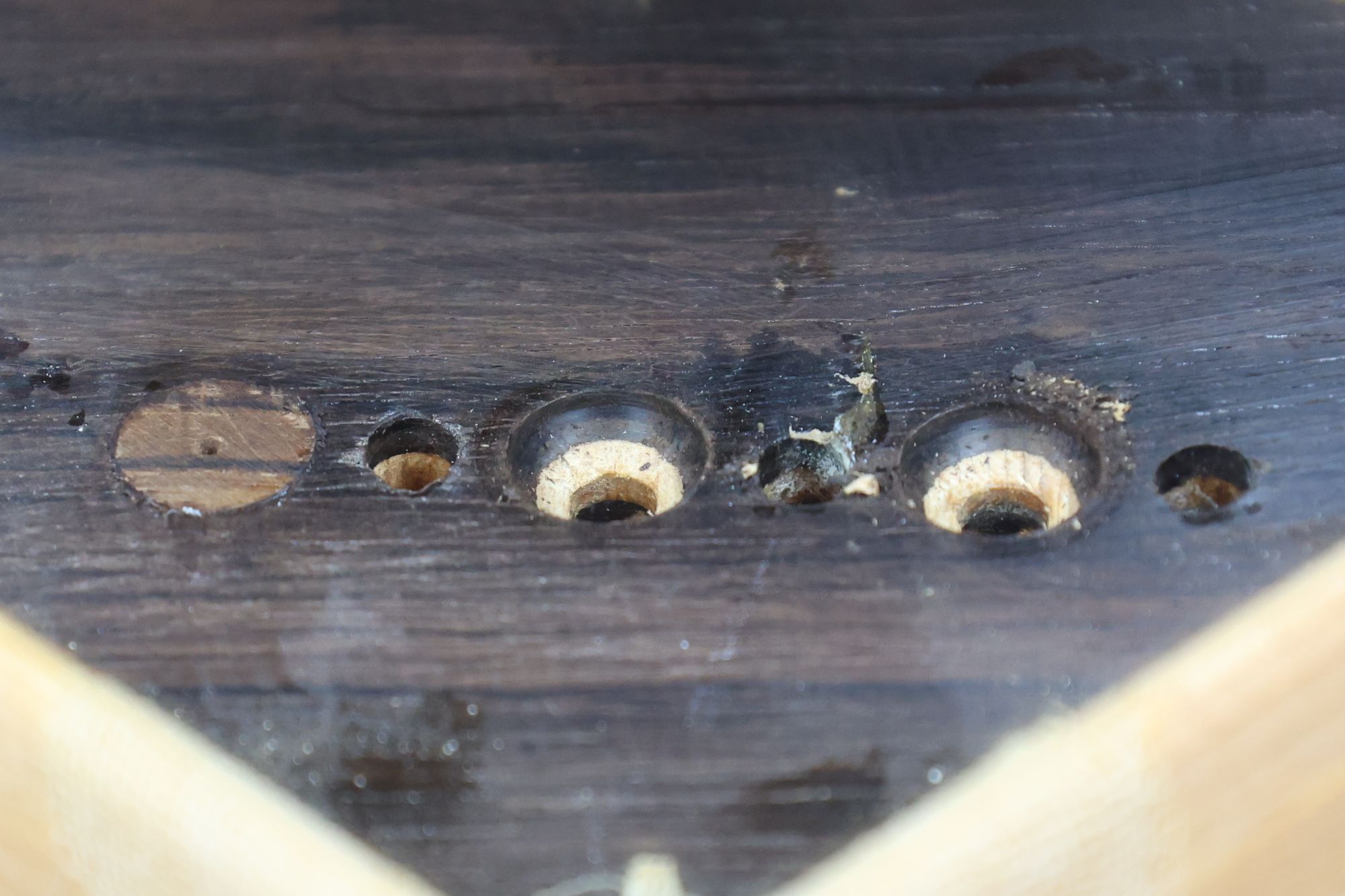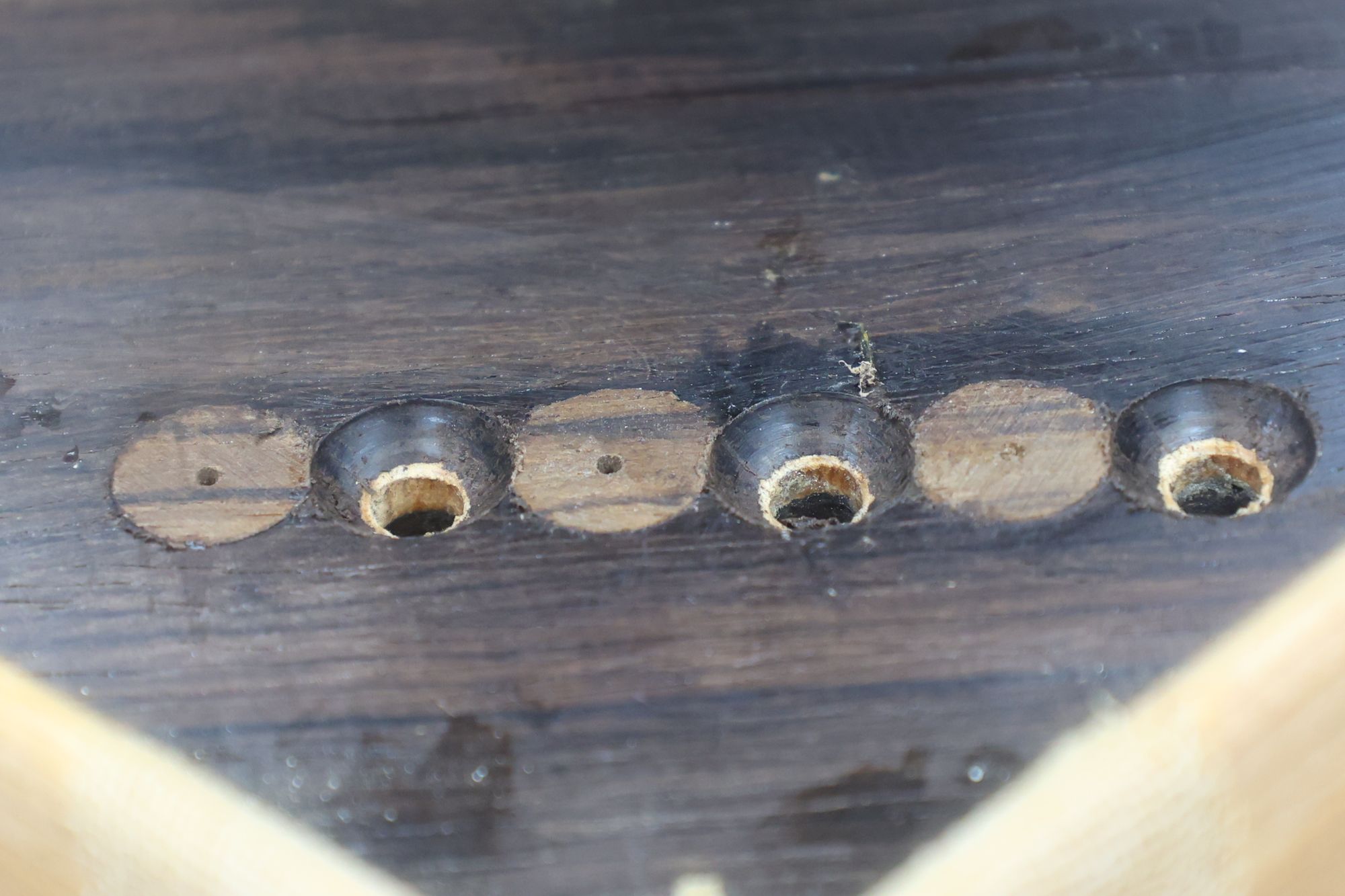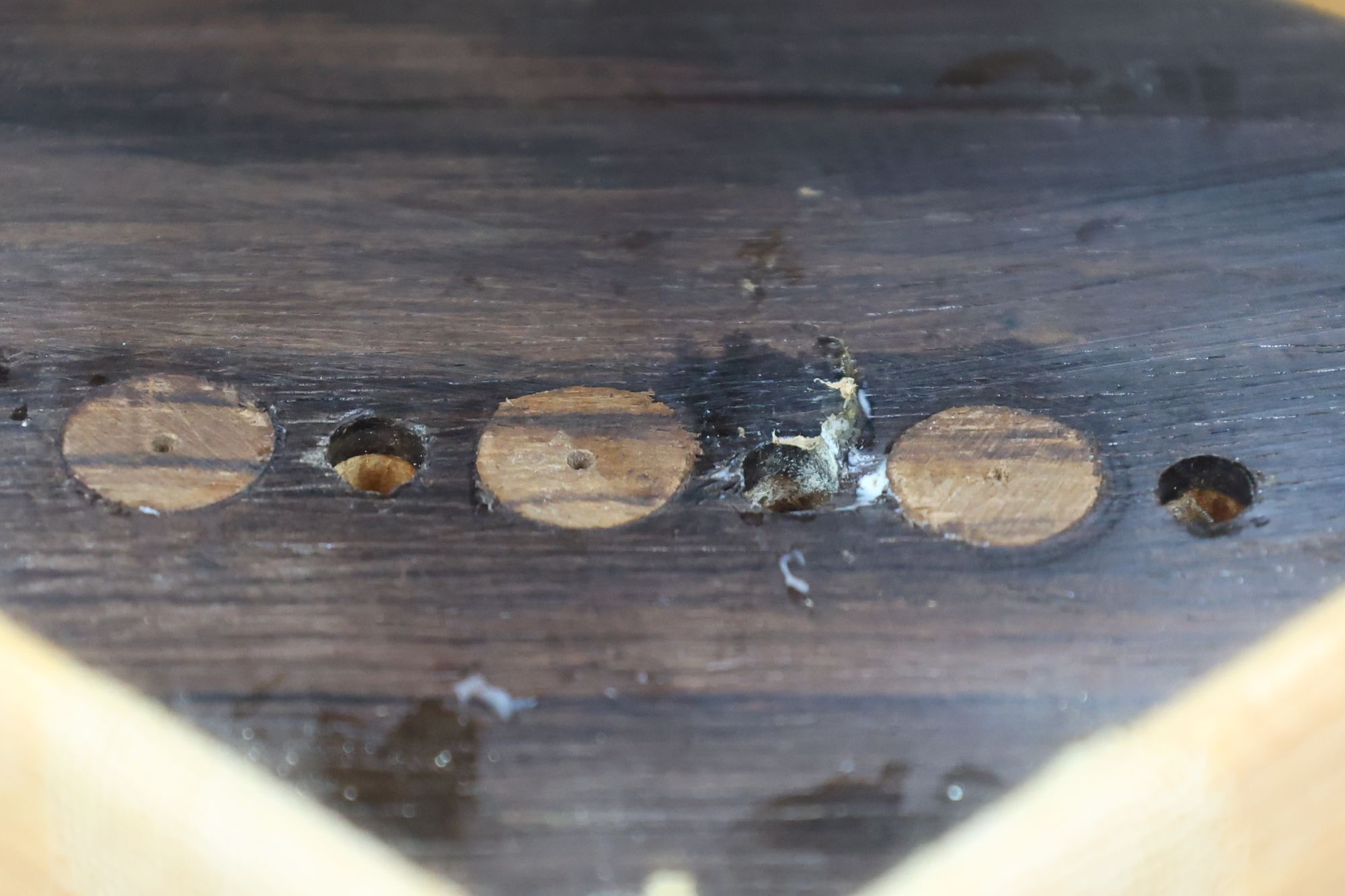 - 5.小穴があいたプラグです。まだ材に固定されています。