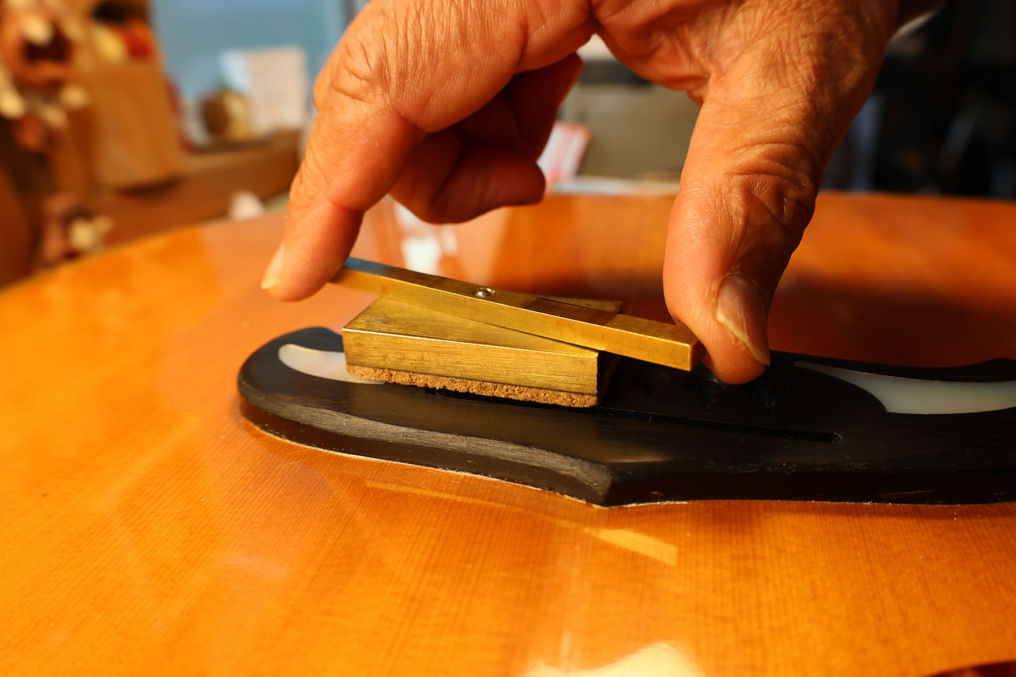 - 12.目視および指で触ってネック、フィンガーボードと段差のないことを確認しておきます。