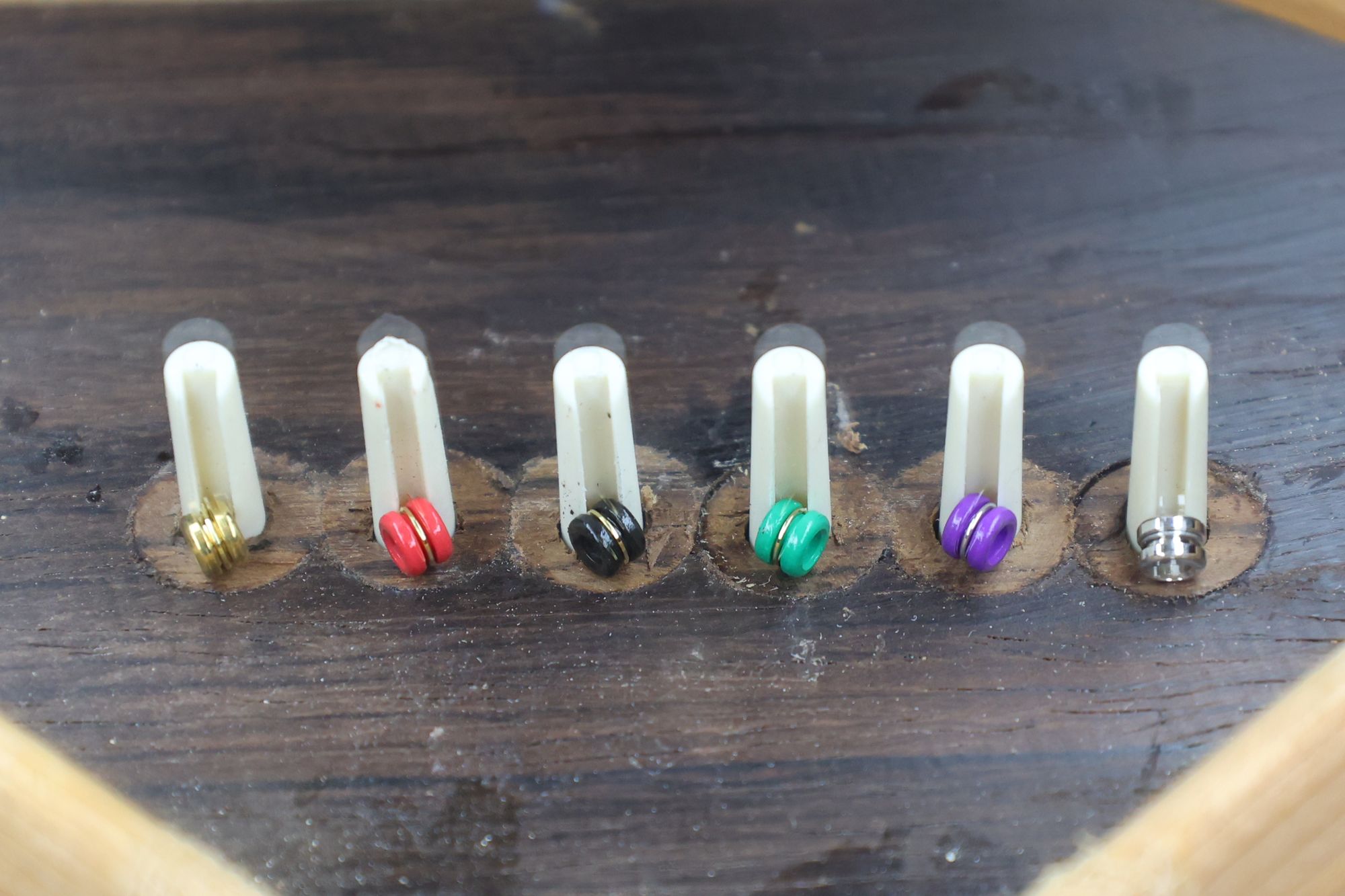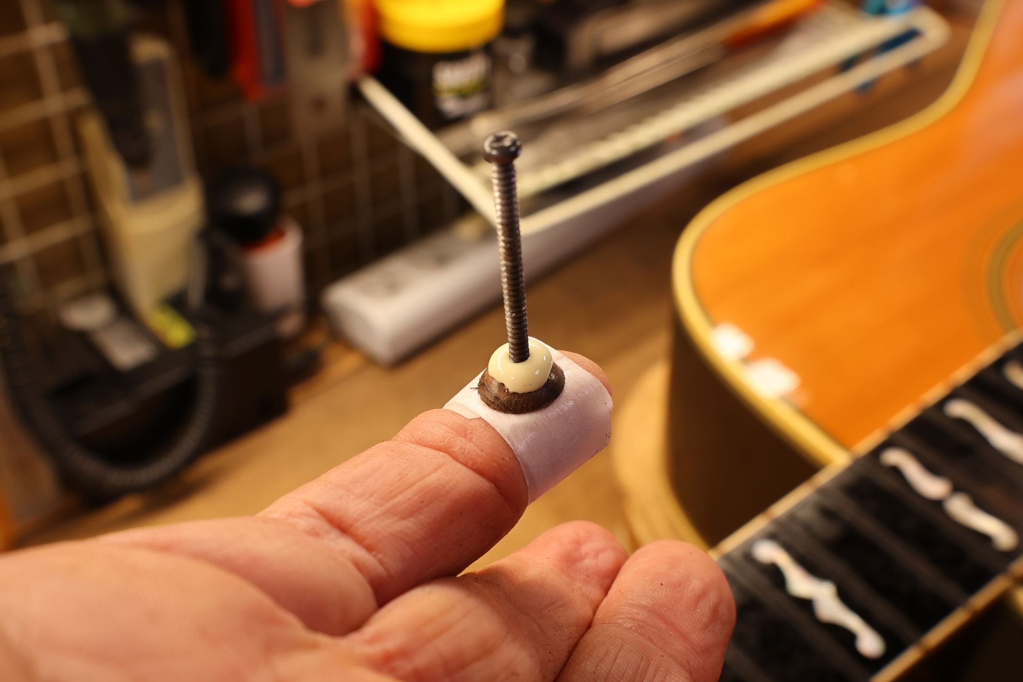 - 19.1,3,5弦のプラグ固着後、同じように2,4,6弦のプラグ接着を行います。