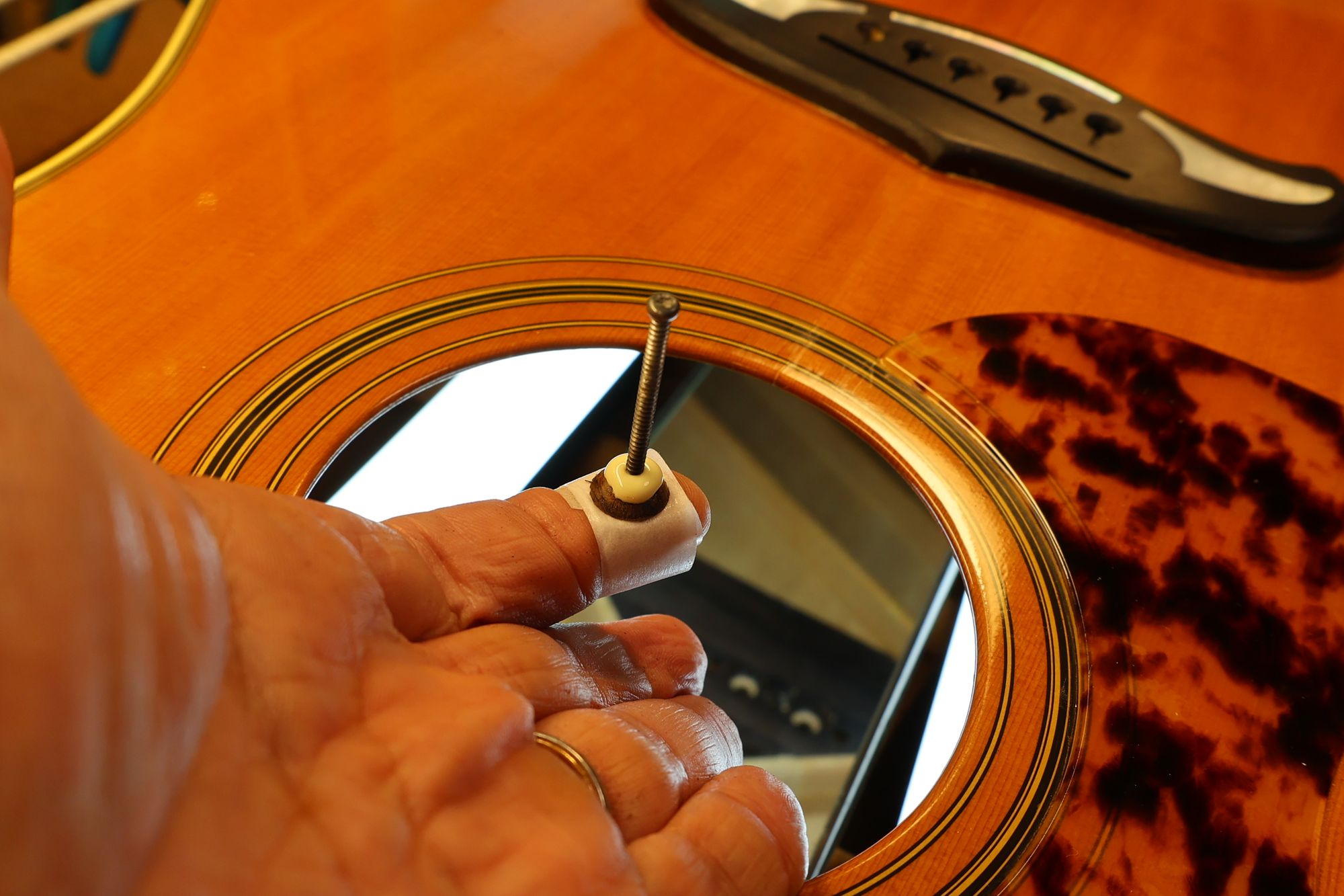 - 15.ジグをサウンドホールから入れていきます。