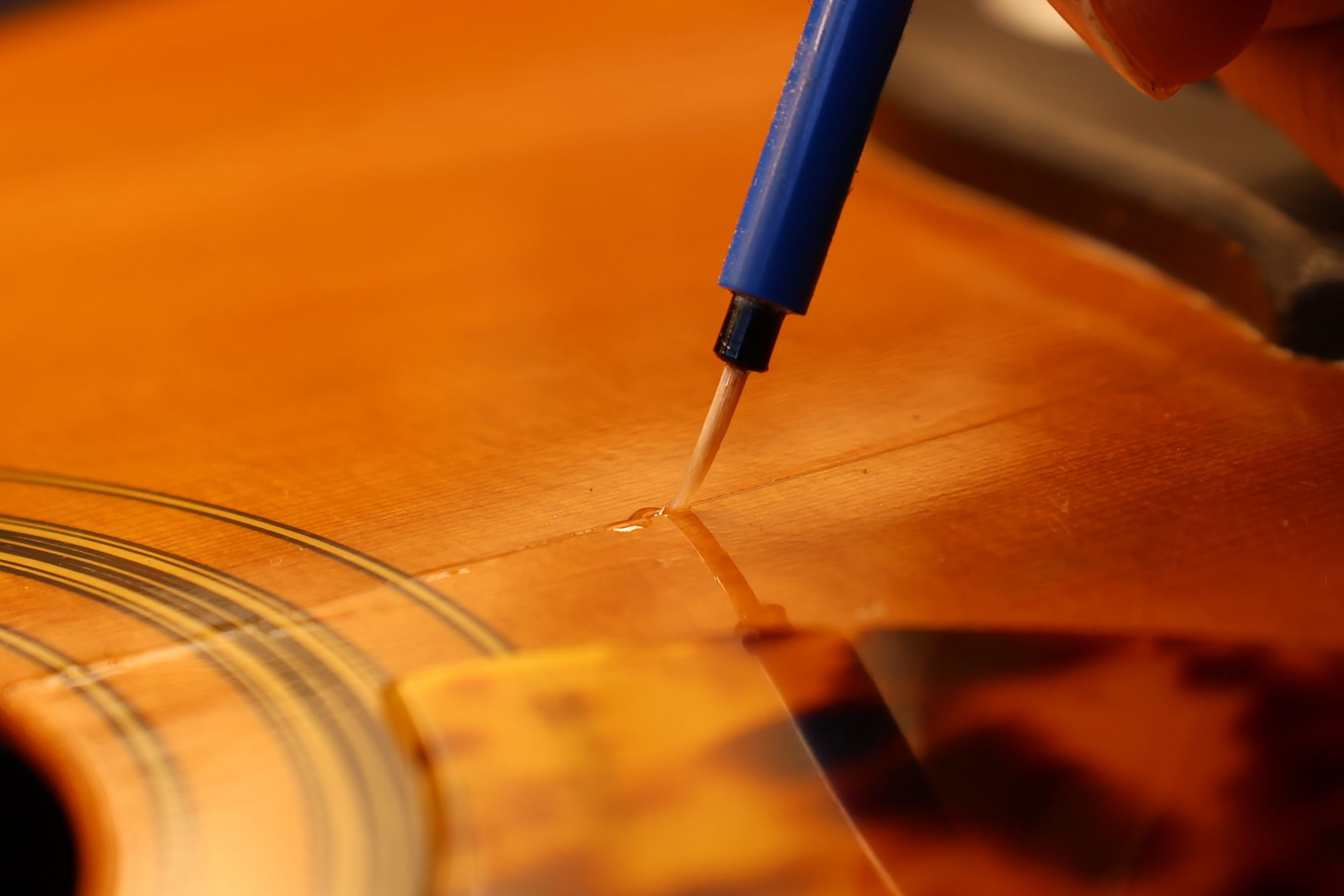 - 4.クリアラッカーをクラック部に流し込んでいきます。