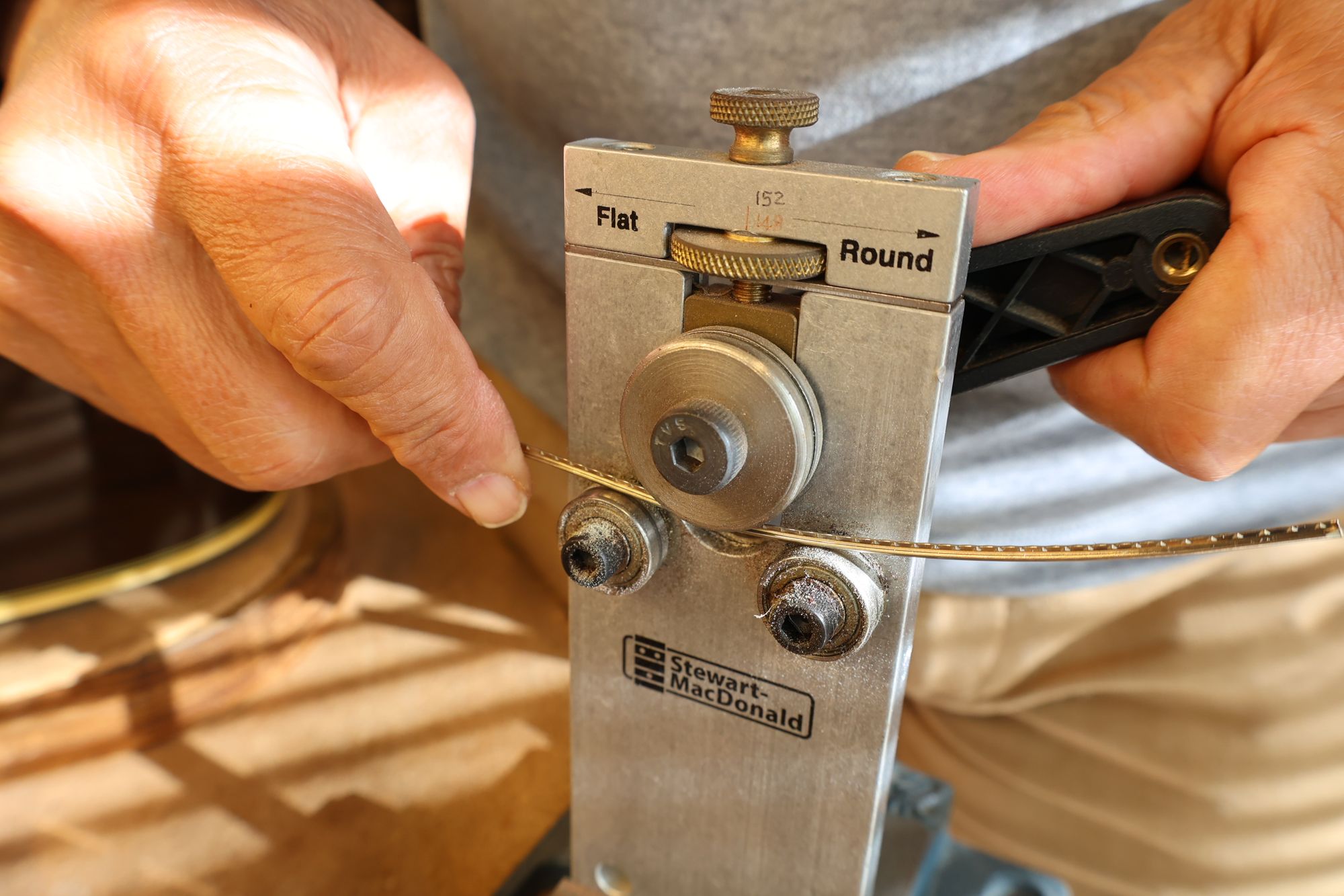 - 9.フレットベンダーでフレットにアールをつけていきます。