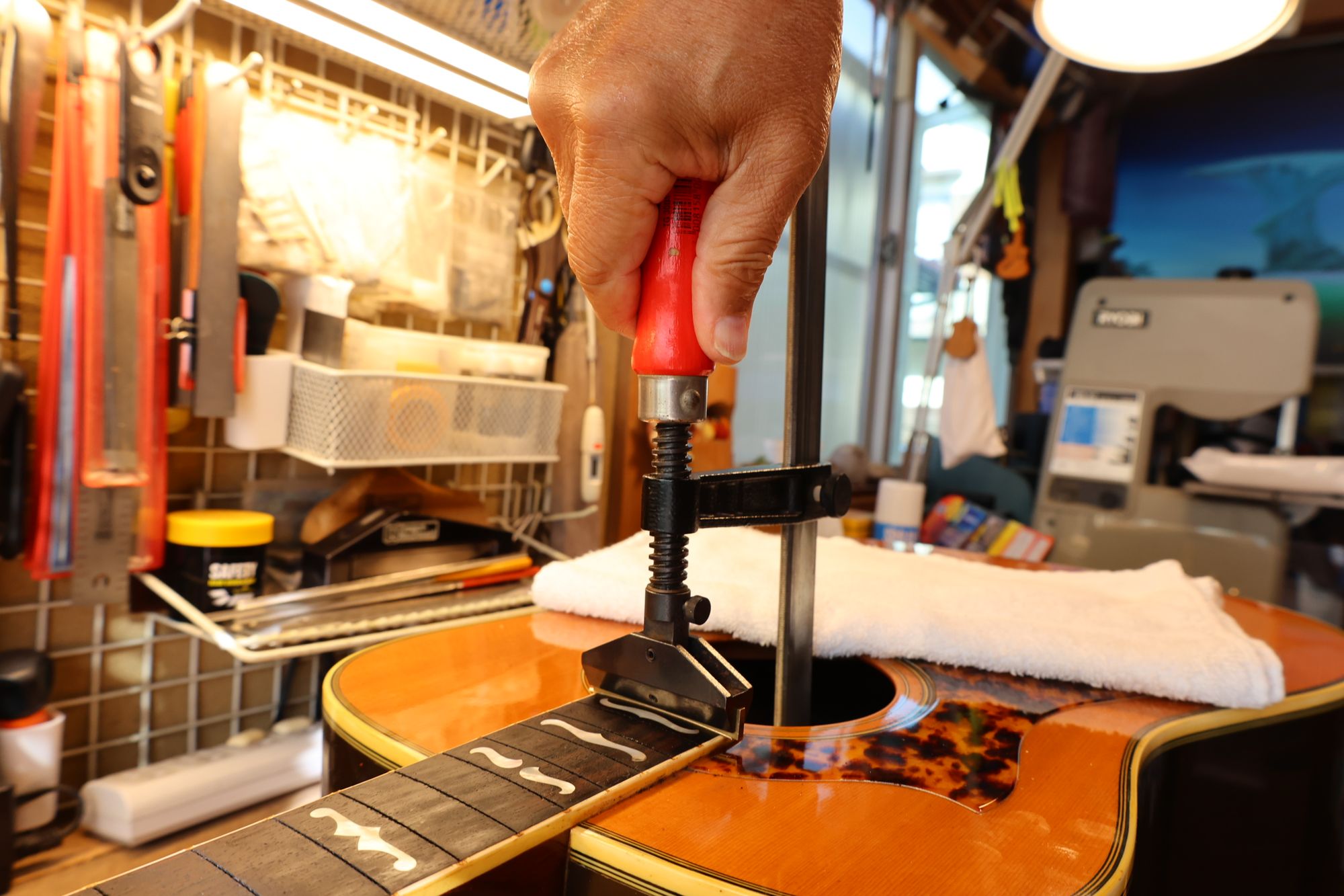 - 7.フレットプレスの準備が整いました。