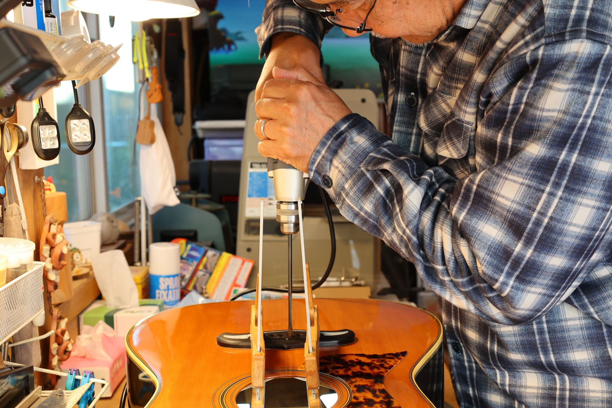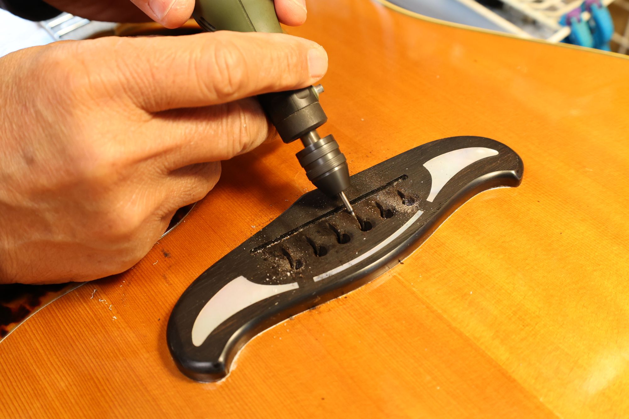- ブリッジピン穴を空けている様子です