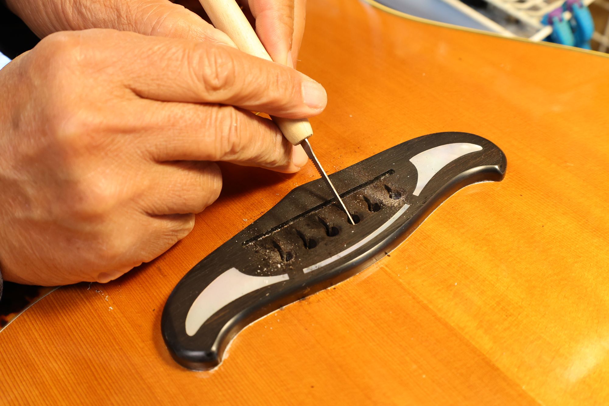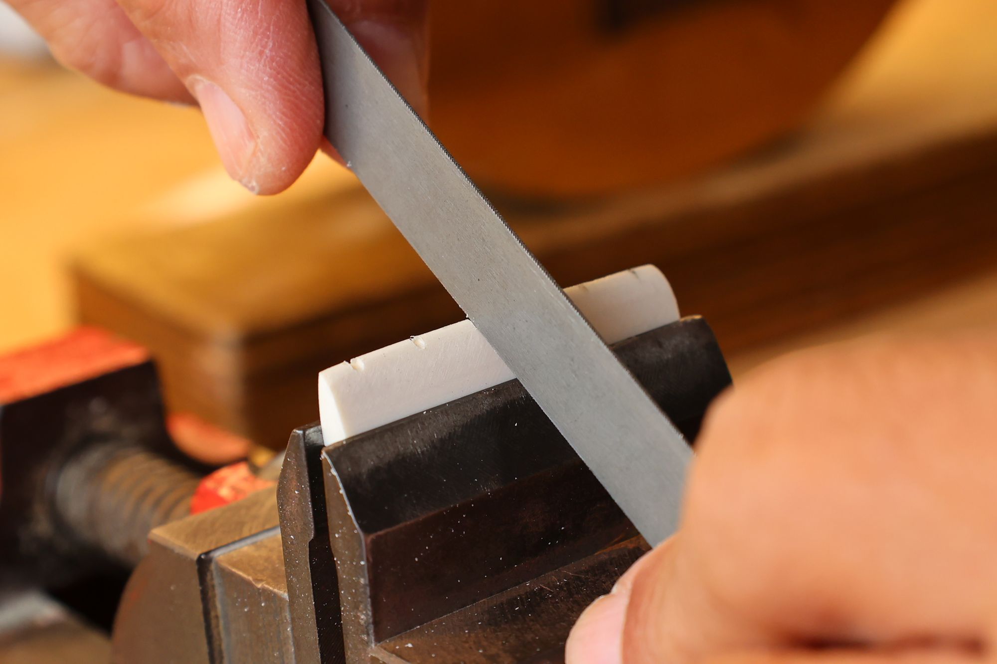 - 17.弦溝を専用のヤスリで彫り込んでいきます。