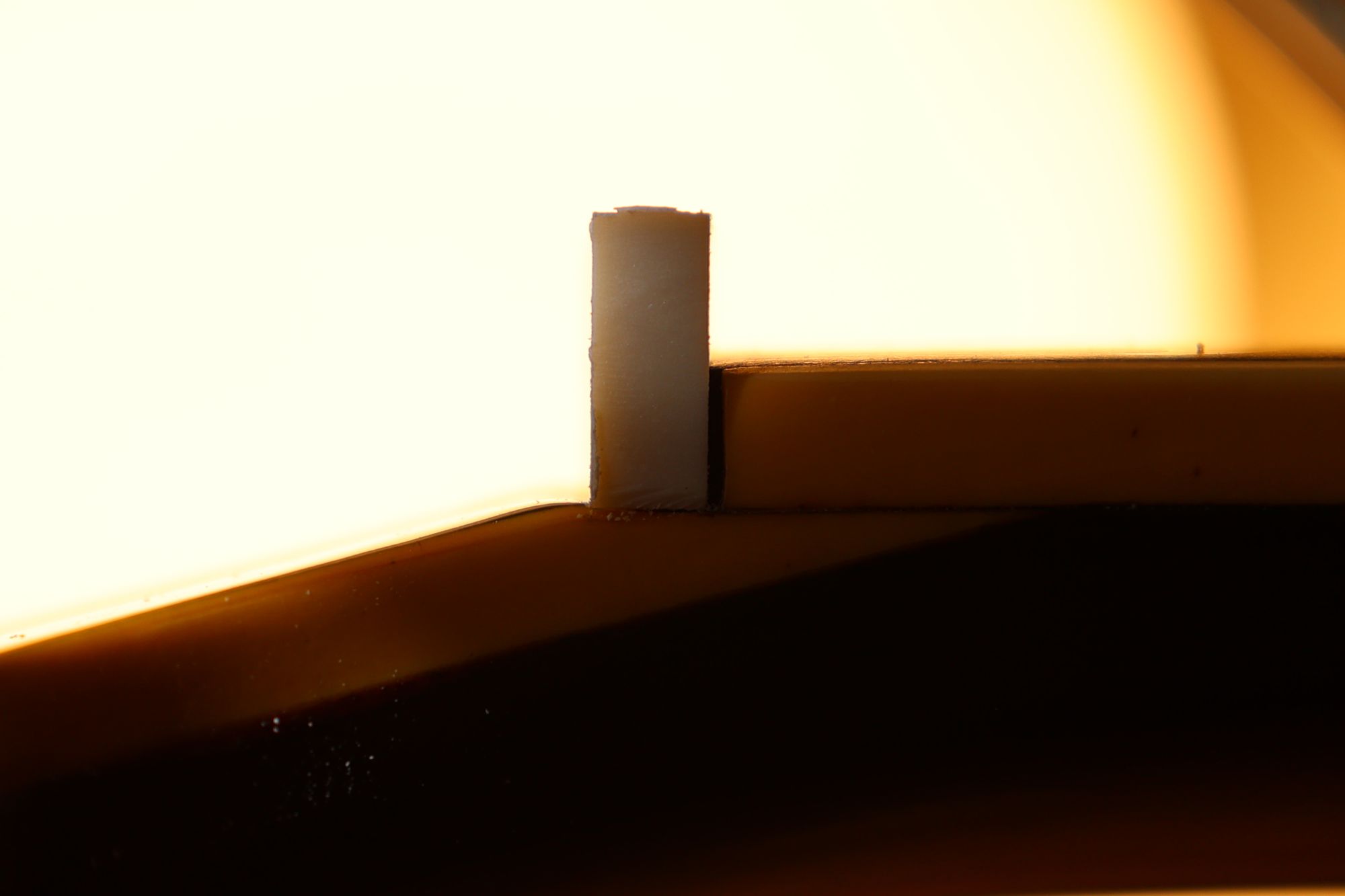 - 24.弦を張りました。エンドポールがプレートの上にしっかり固定されています。