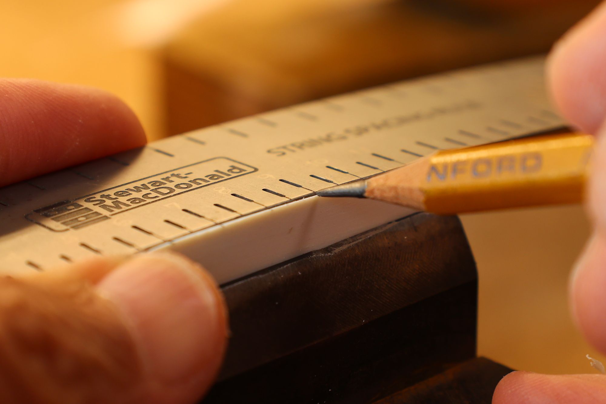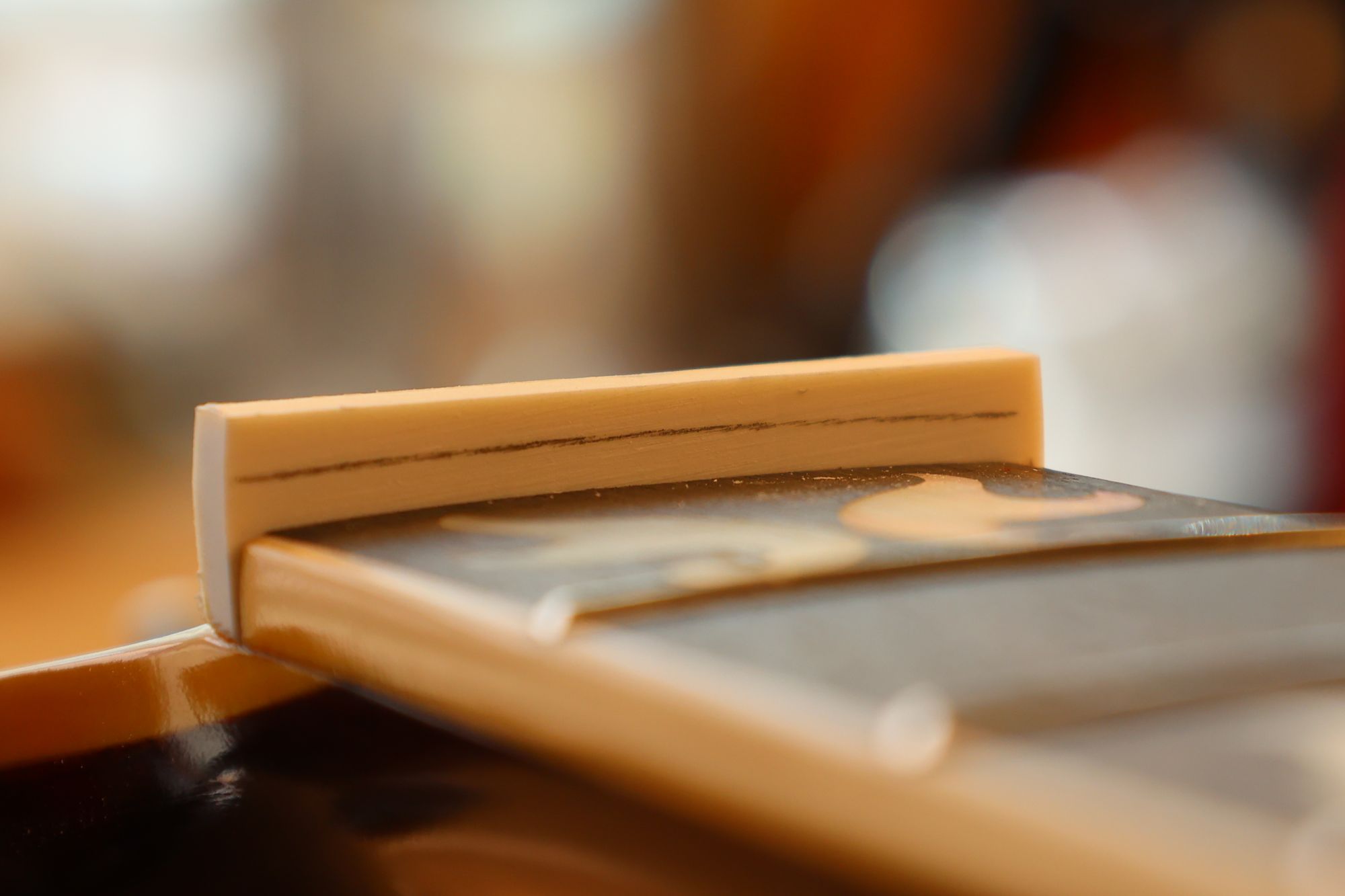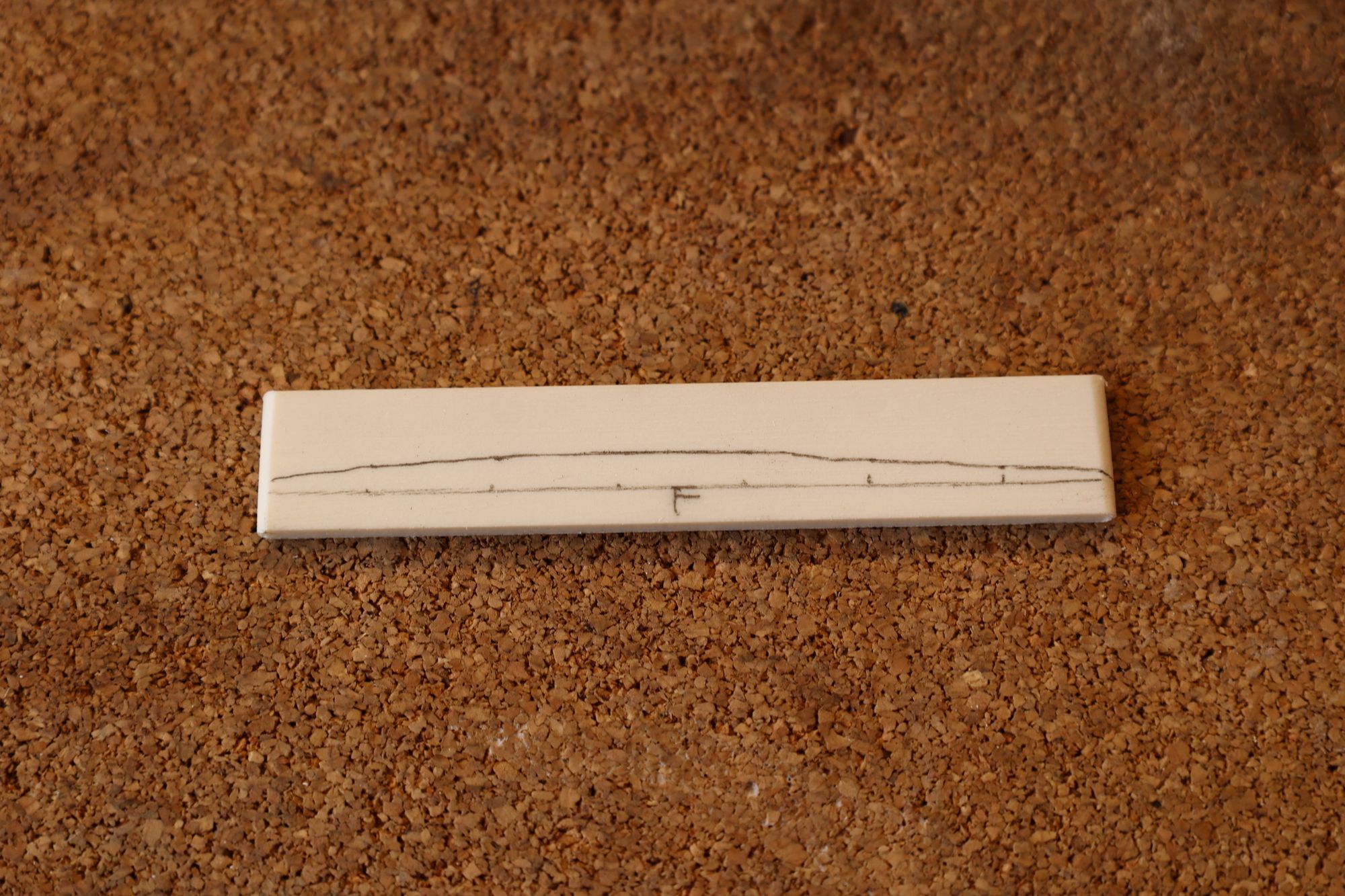 - 16.弦溝位置を新しいナットに書き込みます。