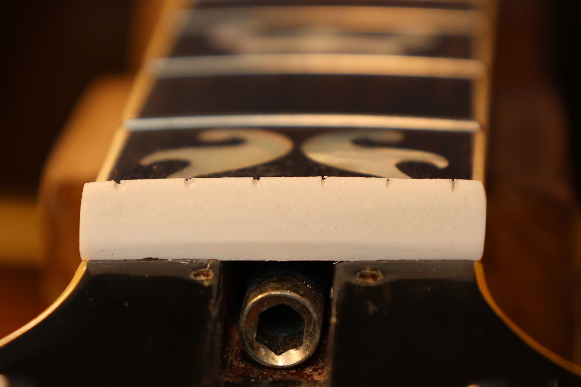 - 18.弦高調整前のナットです。