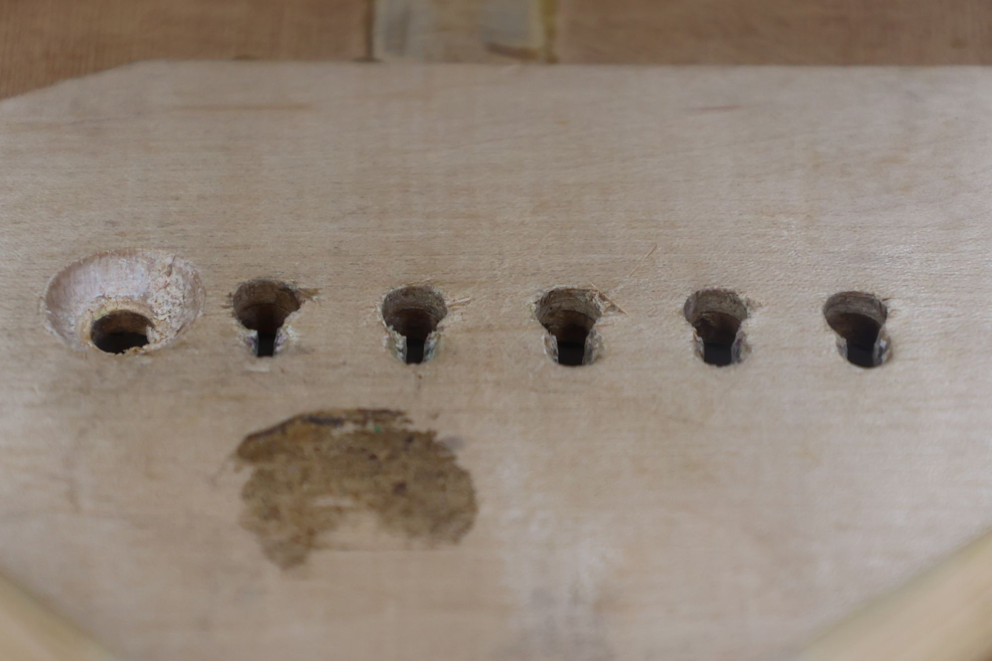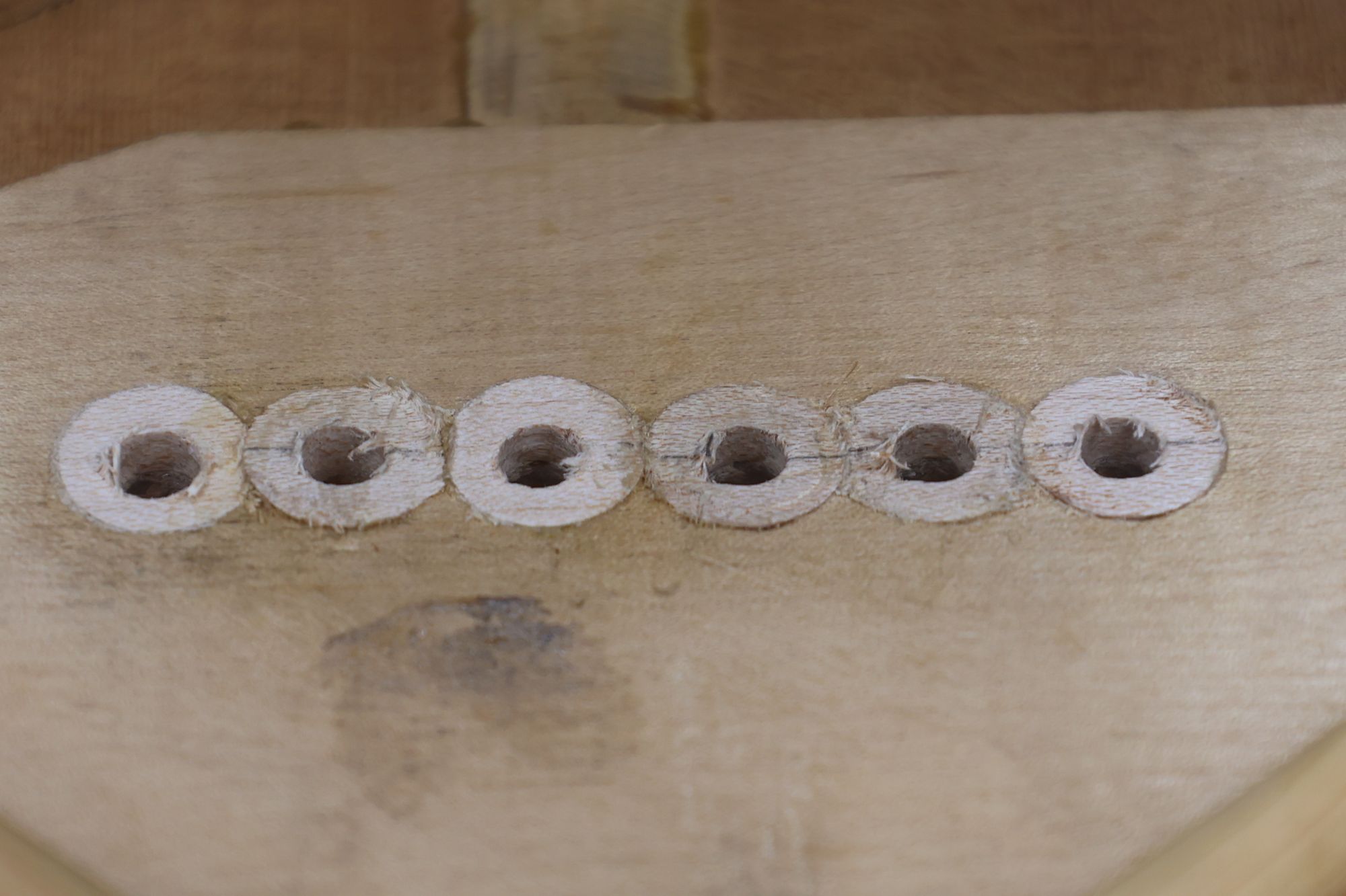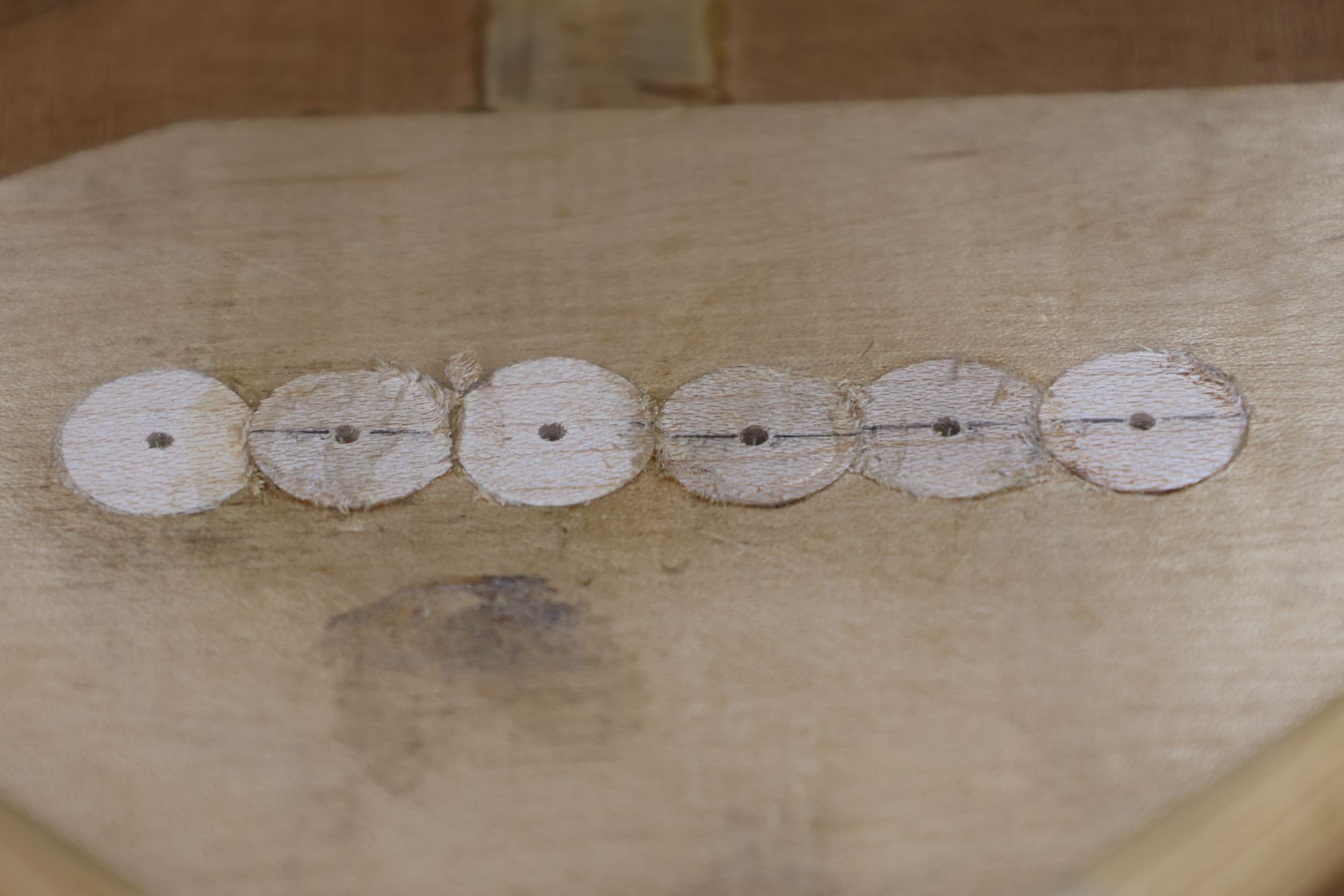 - 5.小穴があいたプラグです。まだ材に固定されています。