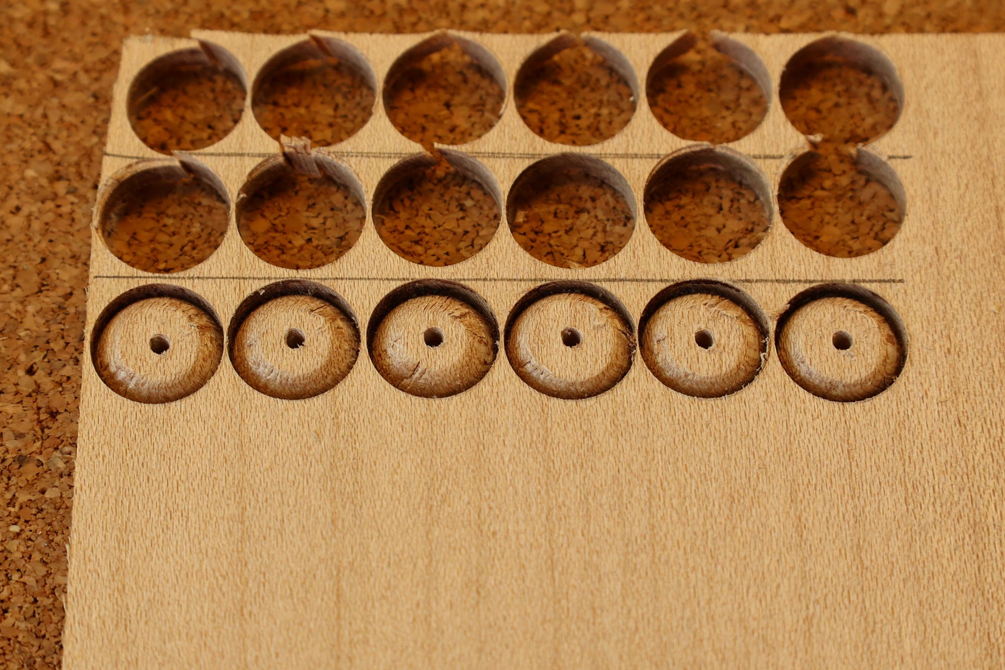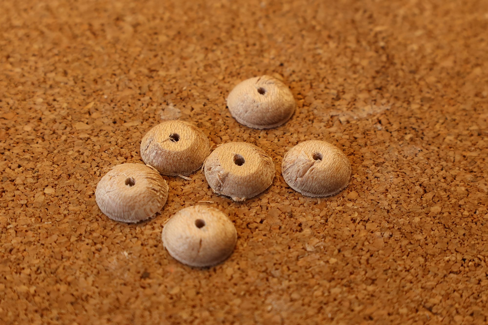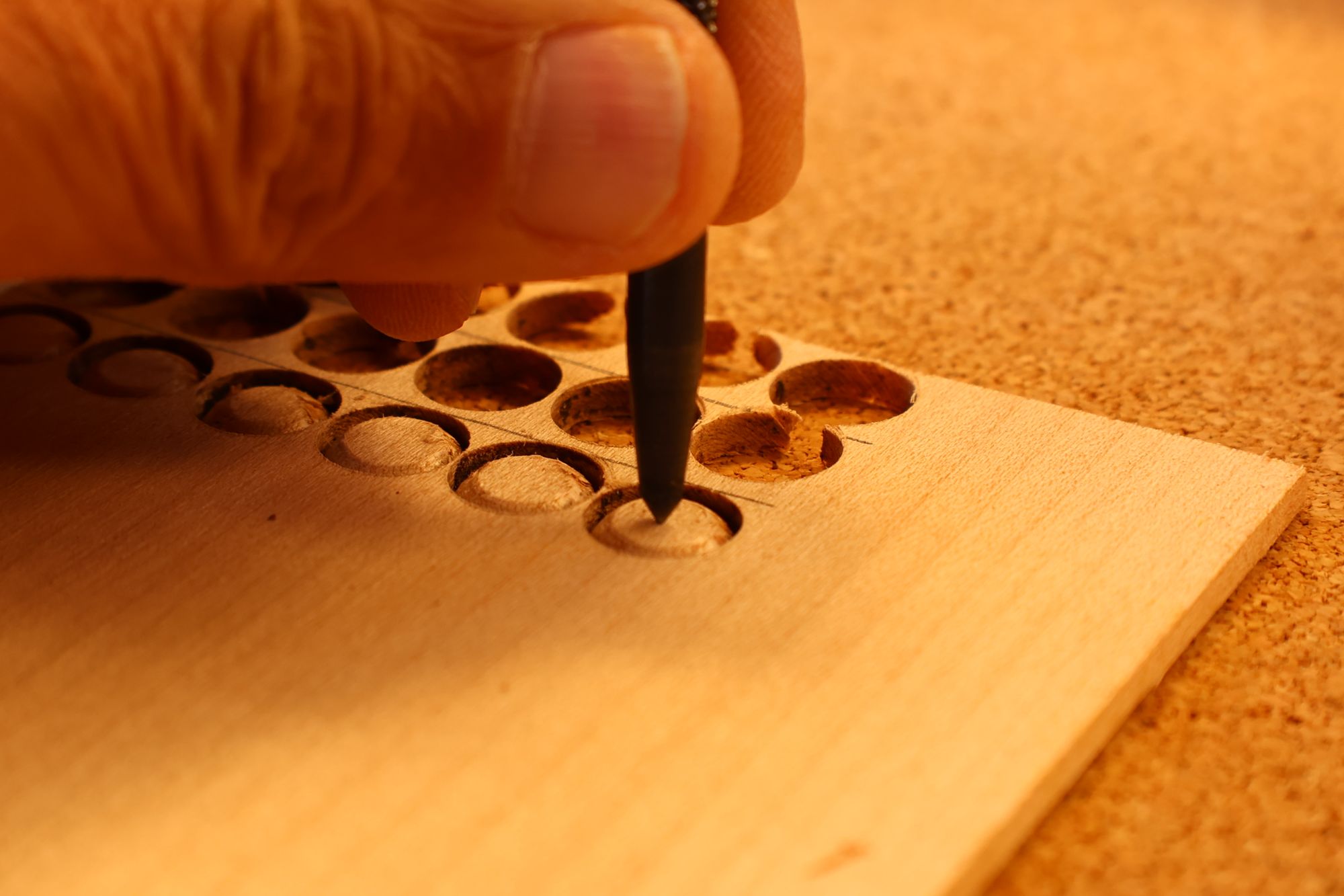 - 5.小穴があいたプラグです。まだ材に固定されています。