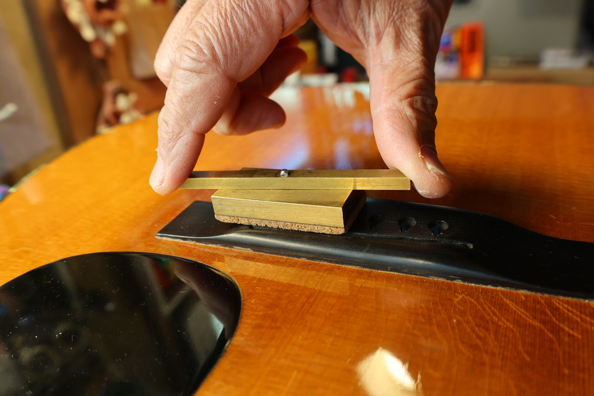 - 8.フィンガーボードの湾曲度(アール)を計測します。