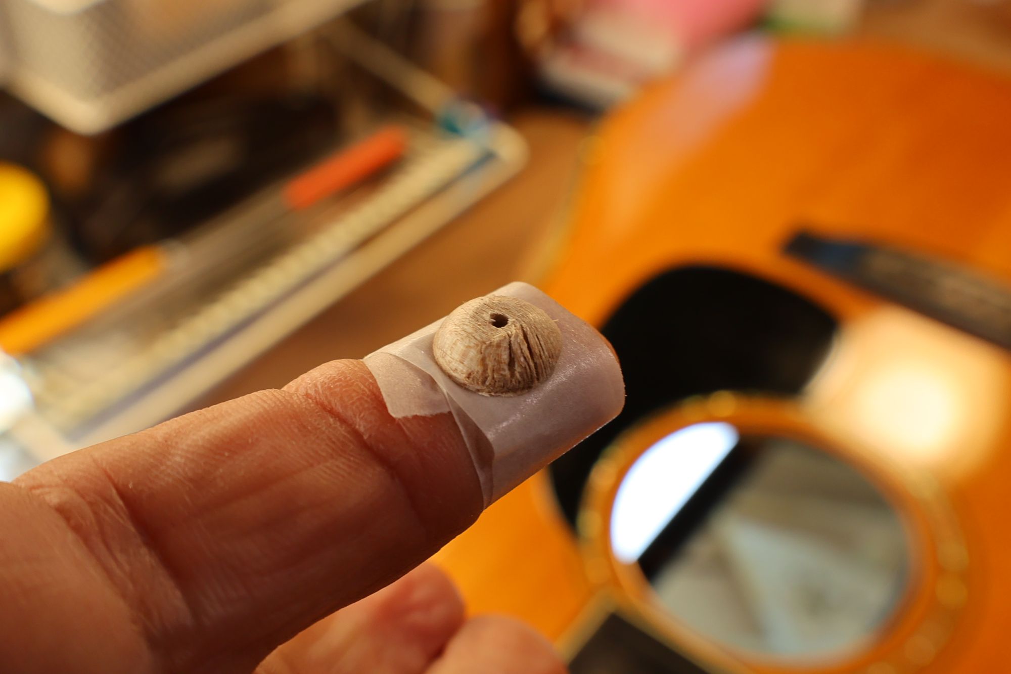 - 15.ジグをサウンドホールから入れていきます。