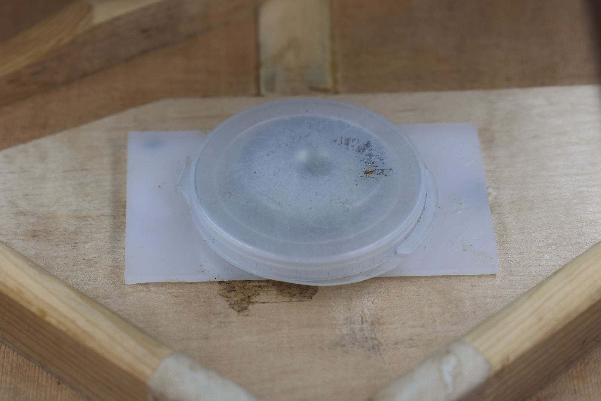 - 3.オリジナルポジションマークを取り除きます。中央に穴を開けました。