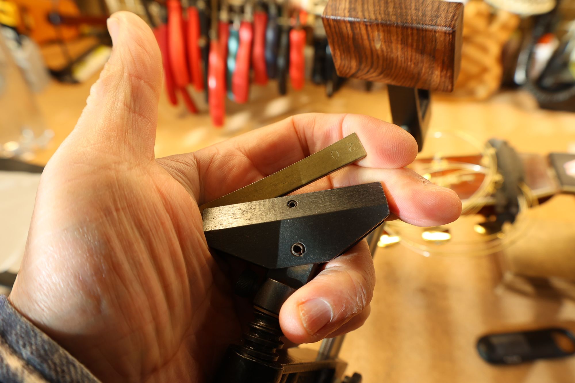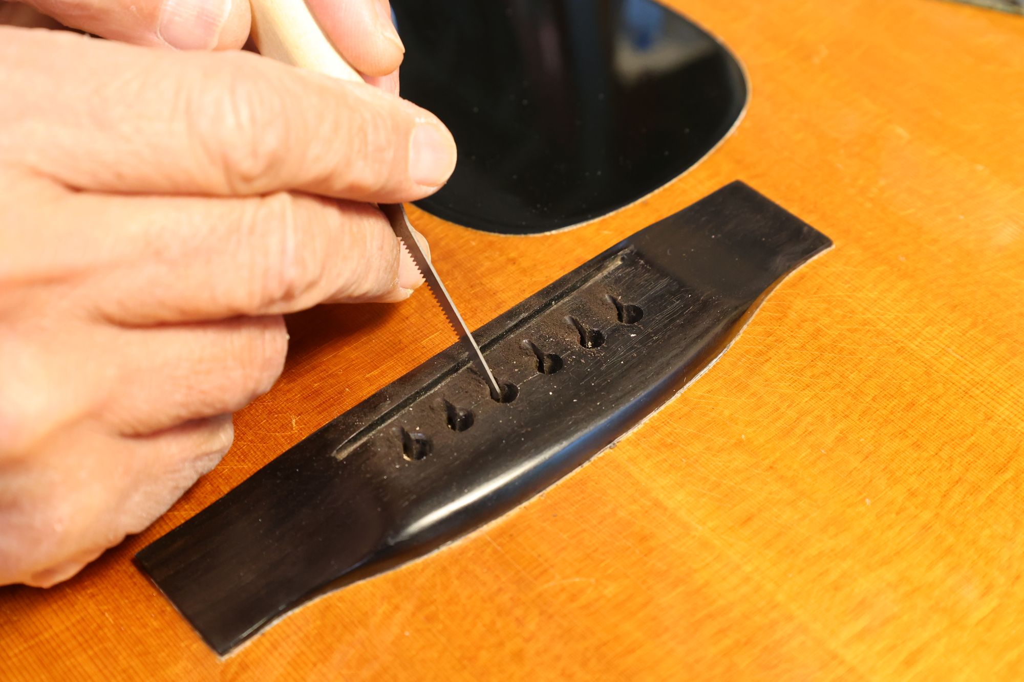 - 19.弦溝を専用のヤスリで彫り込んでいきます。