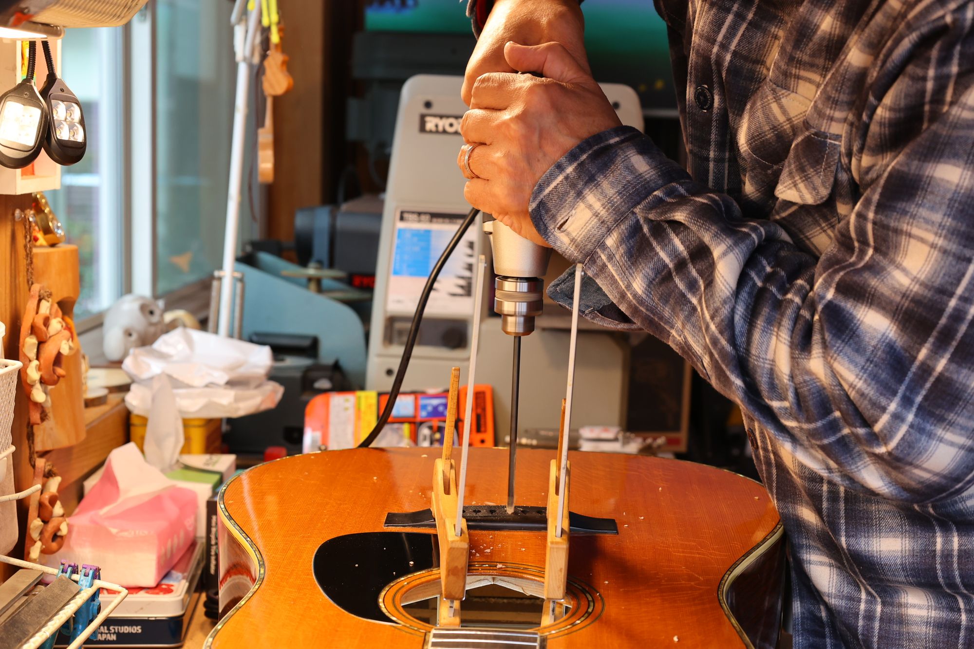 - ブリッジピン穴を空けている様子です