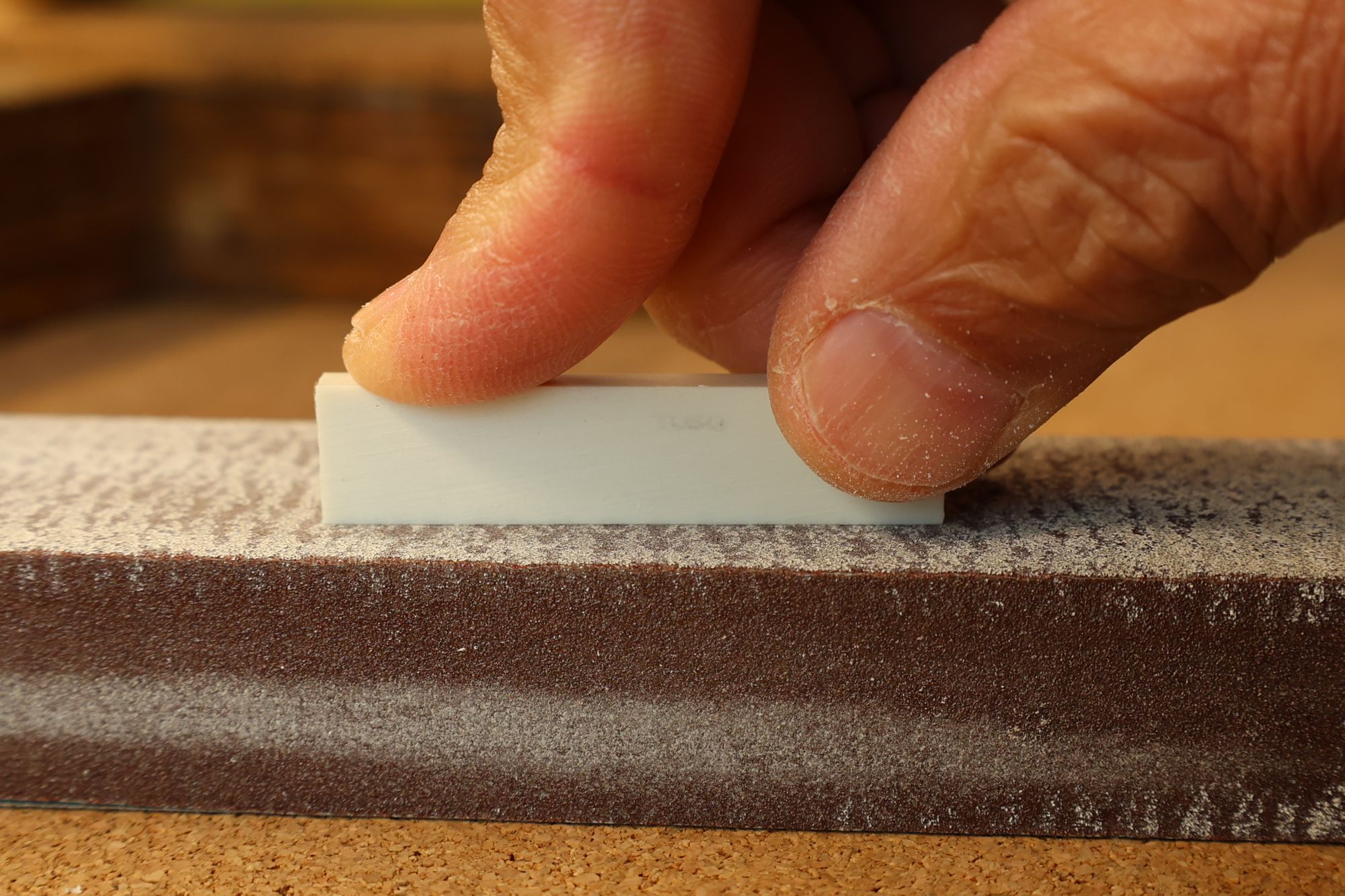 - 14.ペースト固着後、フィンガー簿イードのアールにあったサンディングブロックでサンディングします。