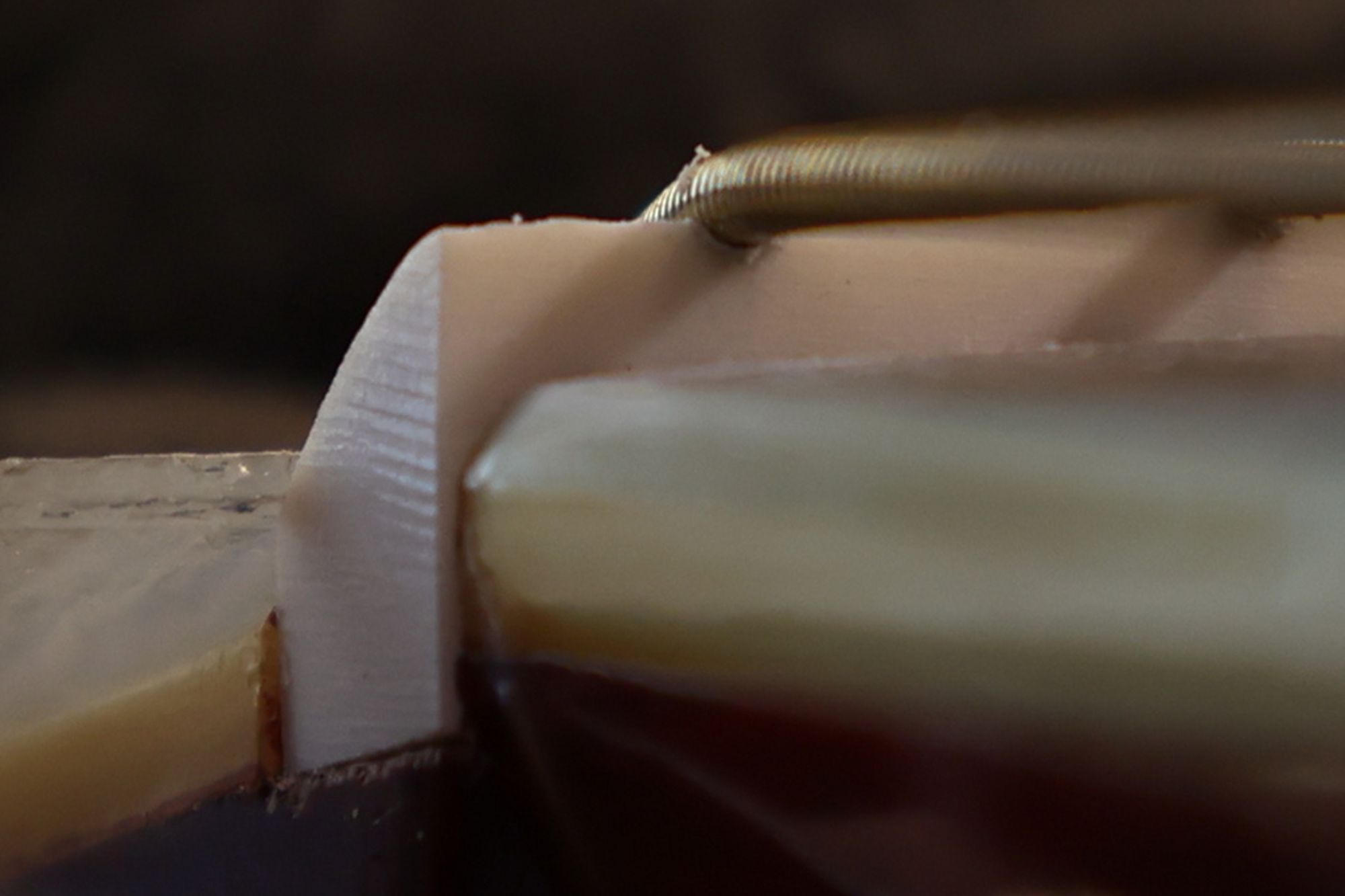 - 2.メイプル材からブリッジプレート・リペアのためのプラグを切り出します。