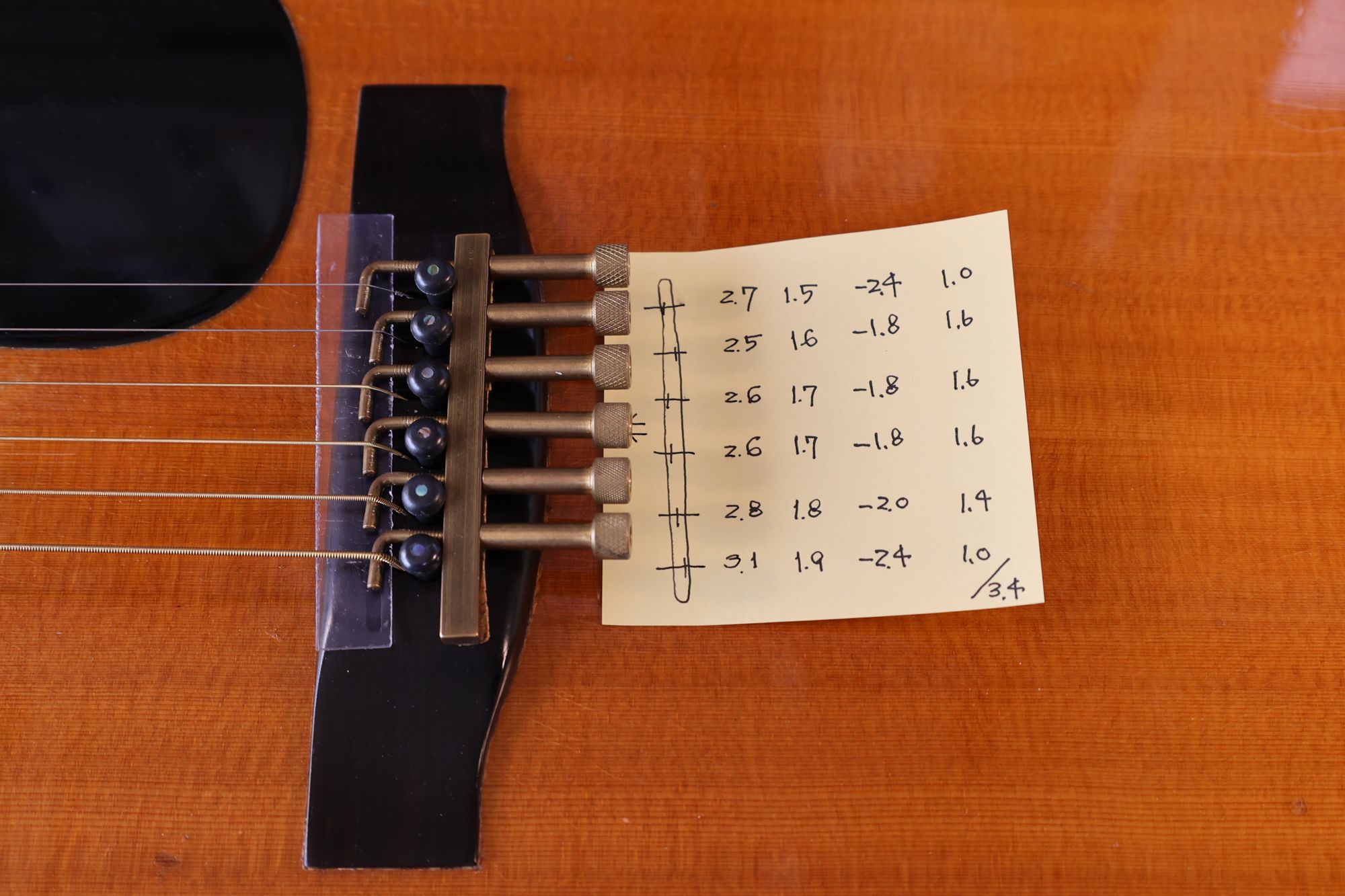 - 17.目標の弦溝位置を読みとります。(1弦と6弦の位置で他の弦の位置が決まります)