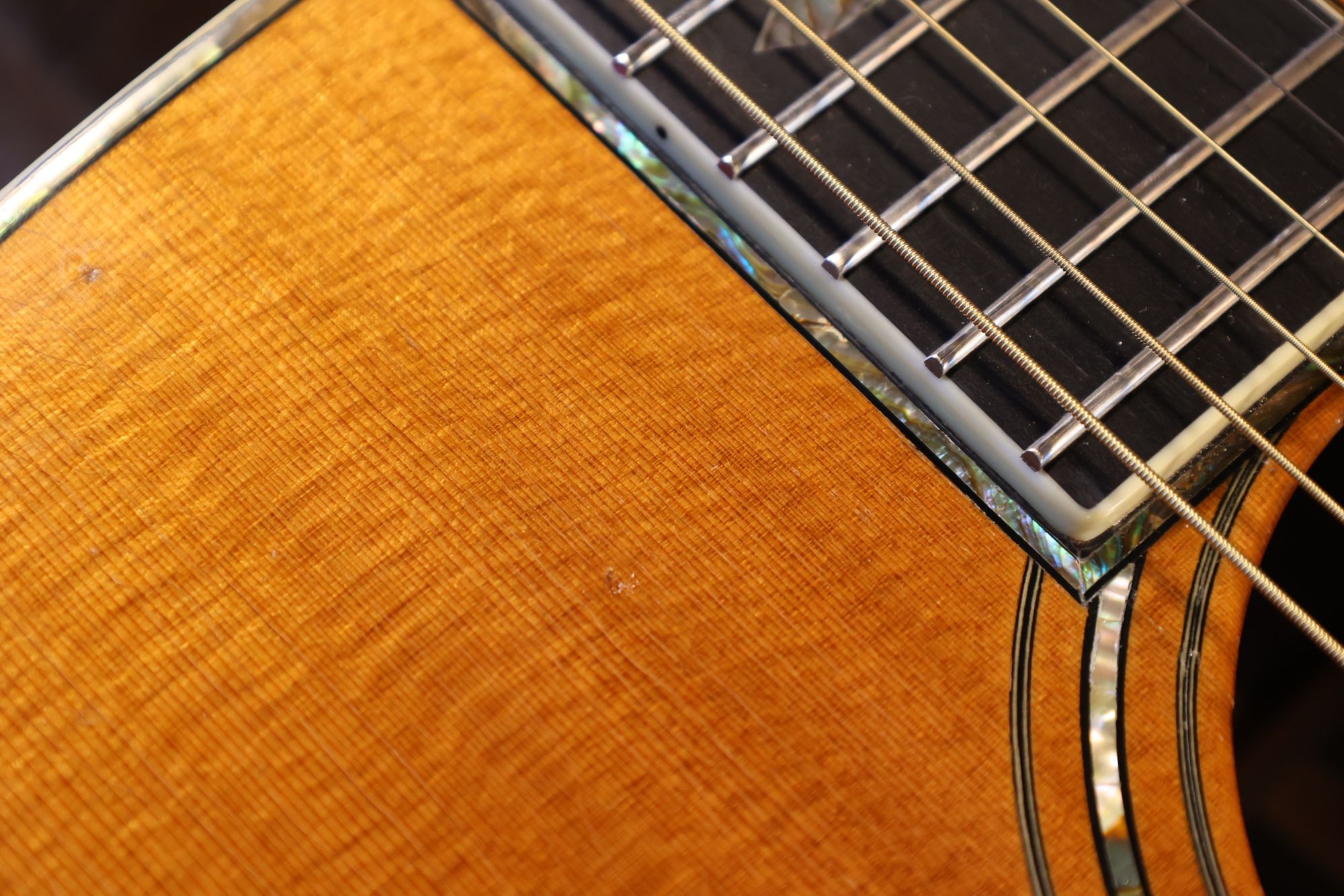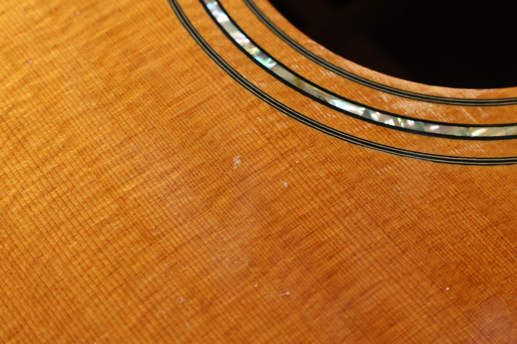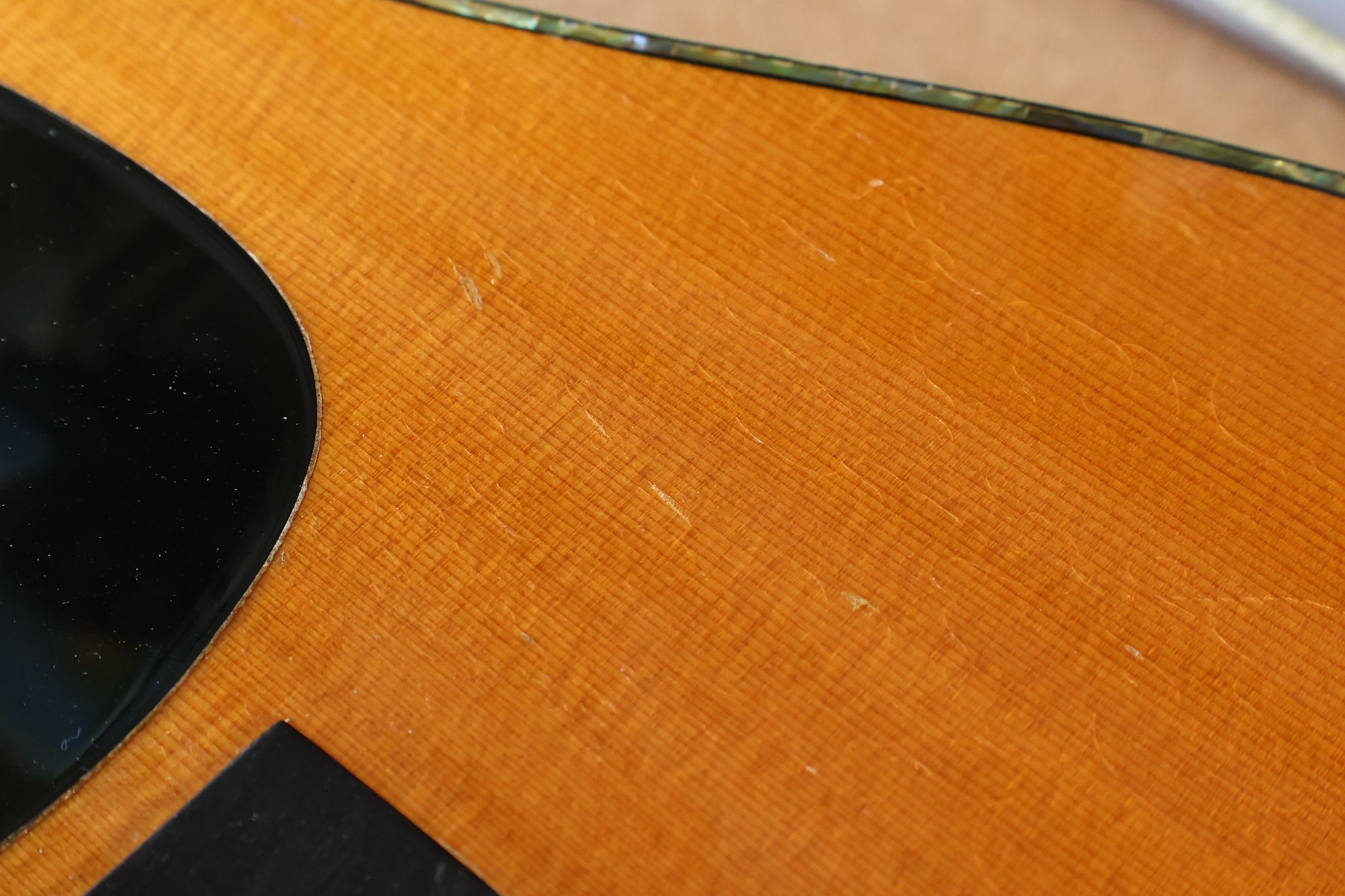 - 2.サウンドホール際にピックのスクラッチ傷跡が見られます。