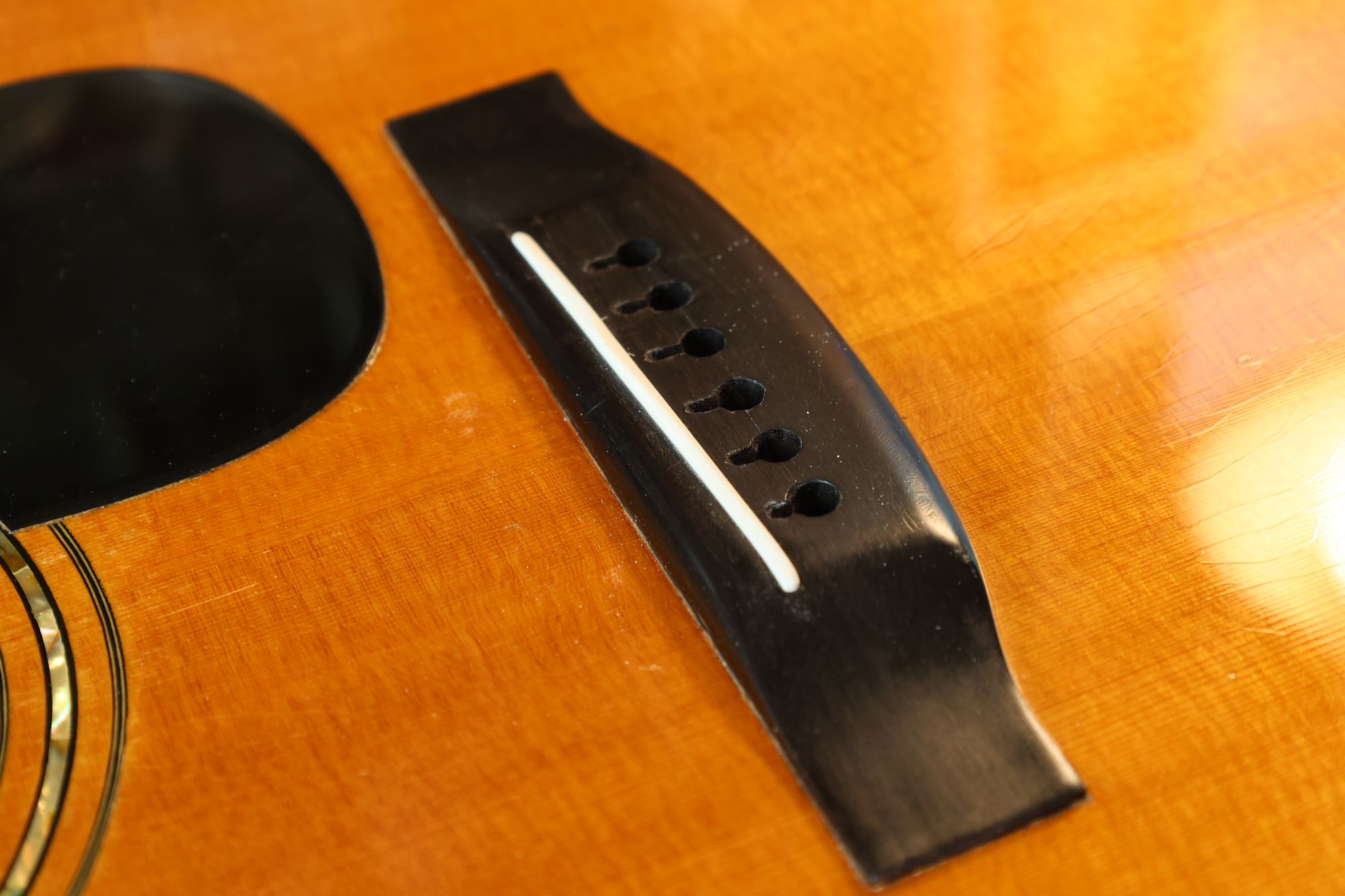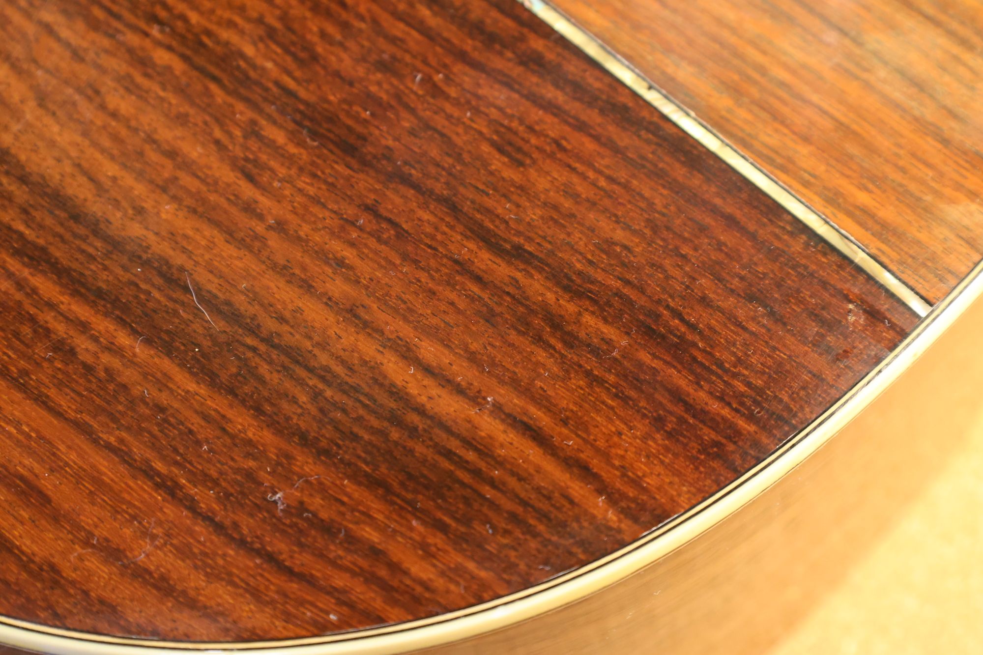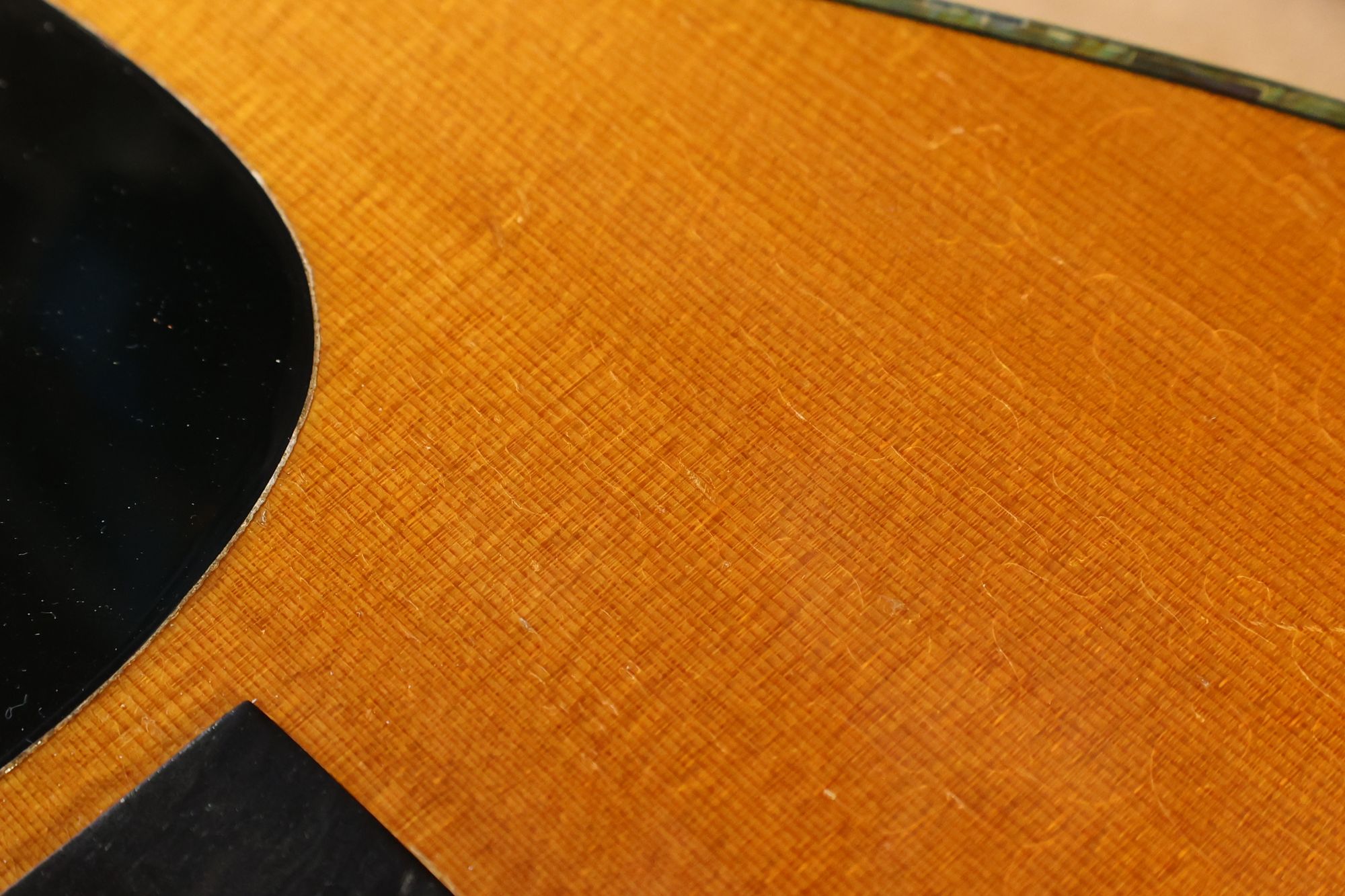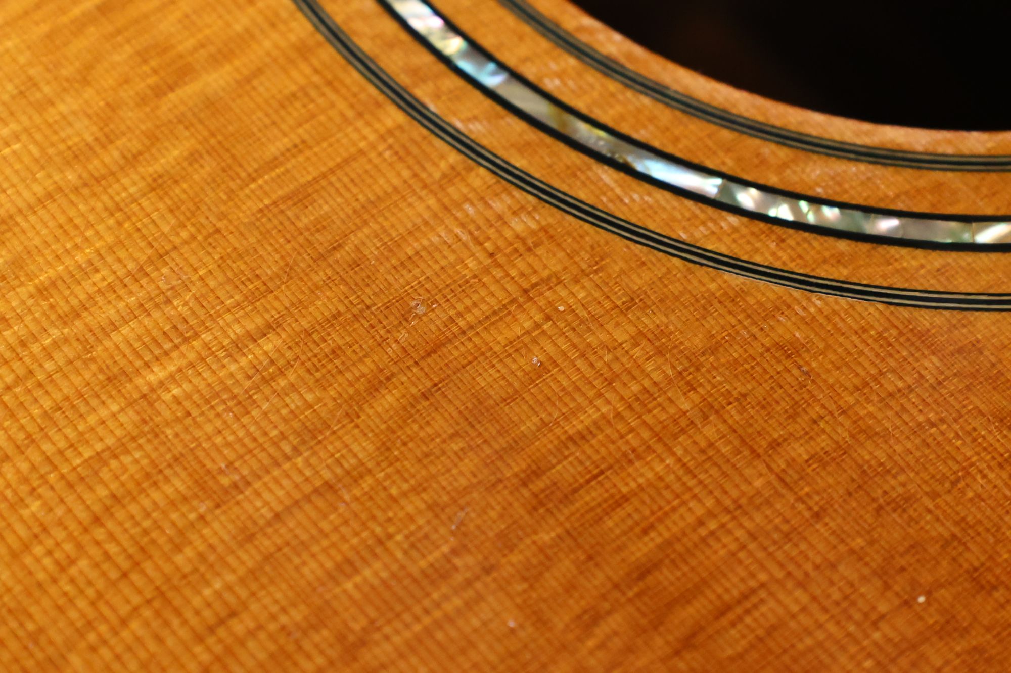 - 2.サウンドホール際にピックのスクラッチ傷跡が見られます。