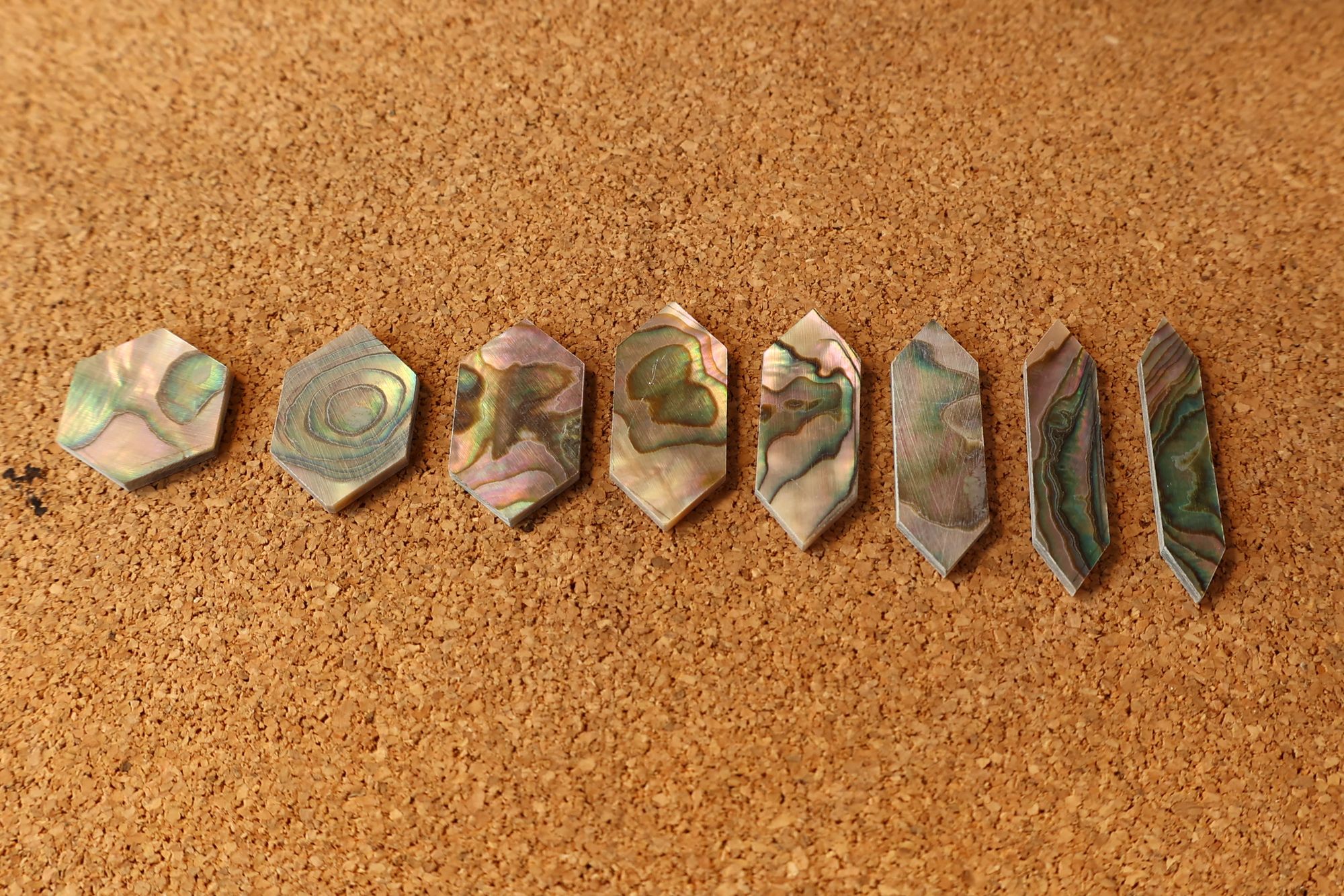 - 7.こちらが交換用のアバロン・インレイ素材です。