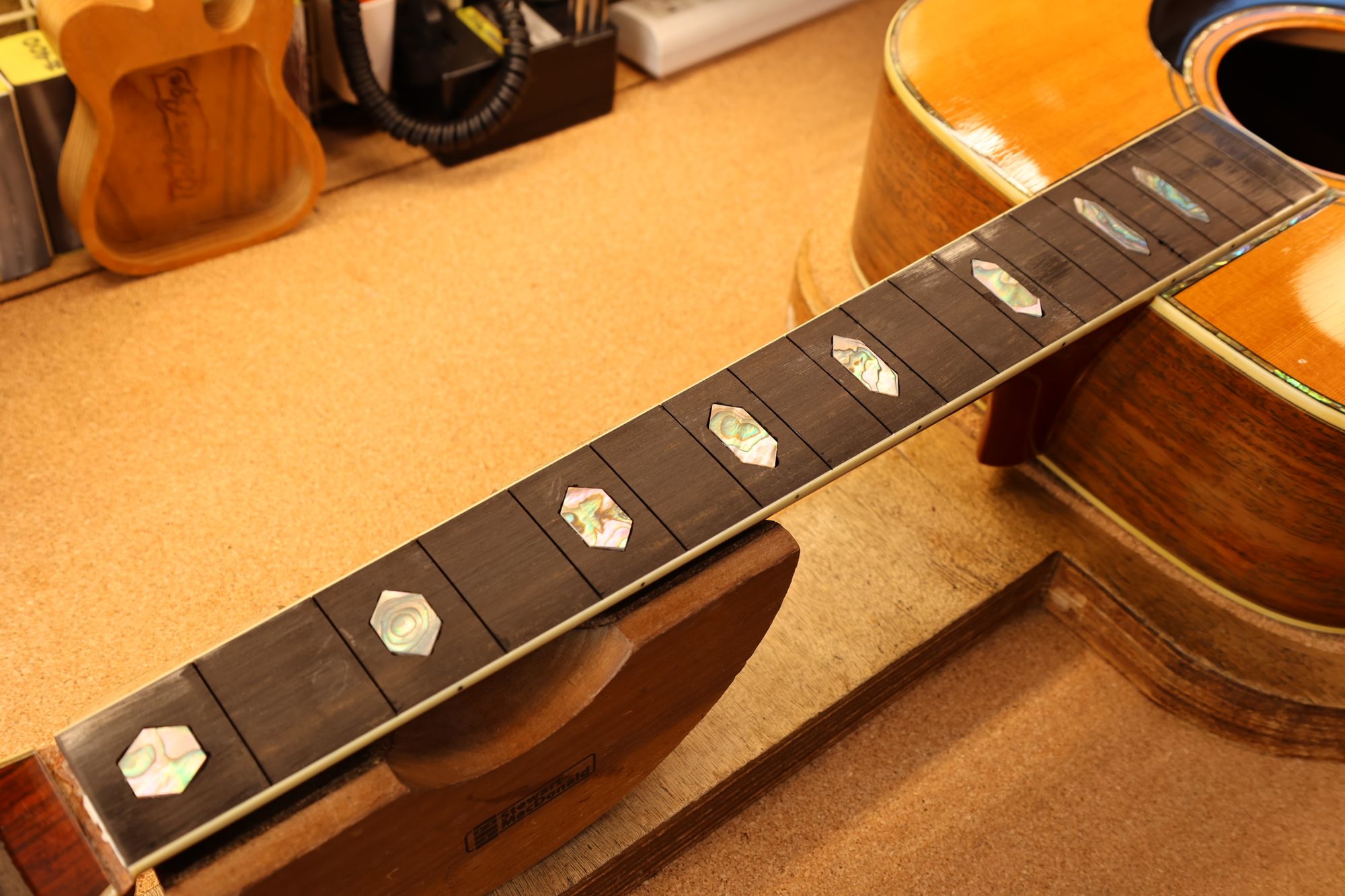 ポジションマークの入れ替えには非常に悩みましたが、アバロンインレイにして本当に良かったと思っています。